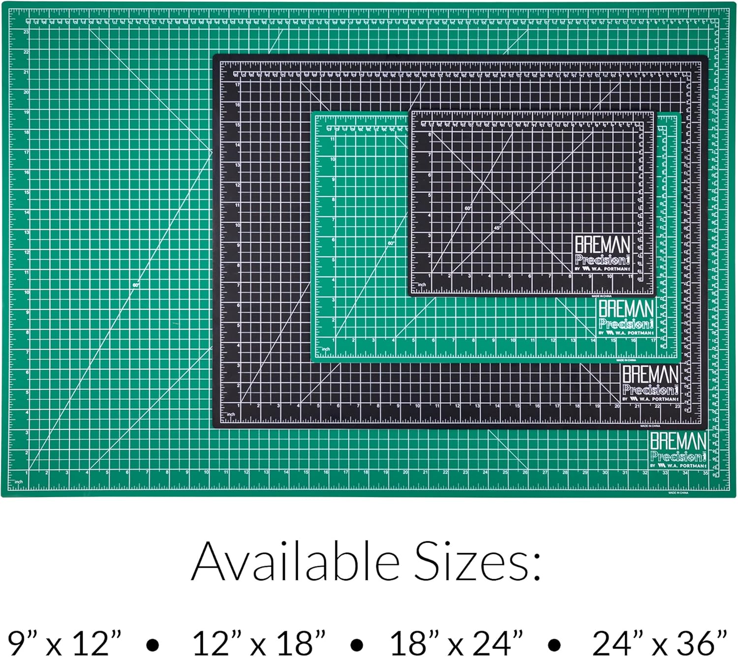 Breman Precision Self Healing Cutting Mat 9x12, 12x18, 18x24 Inch - 3-Pack Rotary Mats for Crafts - 2 Sided 5 Ply PVC Self Healing - Fabric Cutting Mat for Sewing