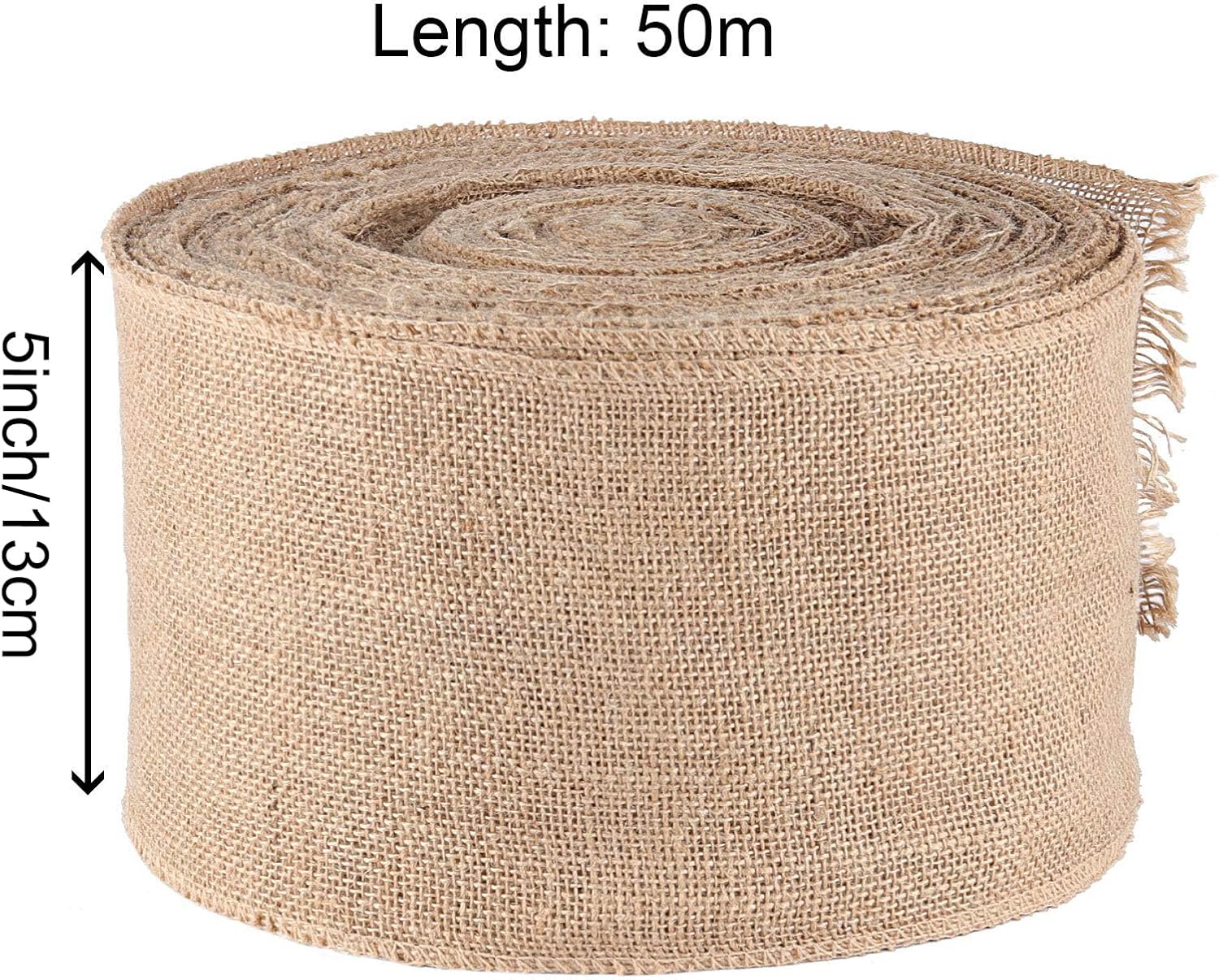 - IDEAL SIZE - each roll of burlap fabric ribbon is 5 inch/127mm wide x 54 yards/50m long. Common width perfect for direct uses. Easy to cut any length as needed.