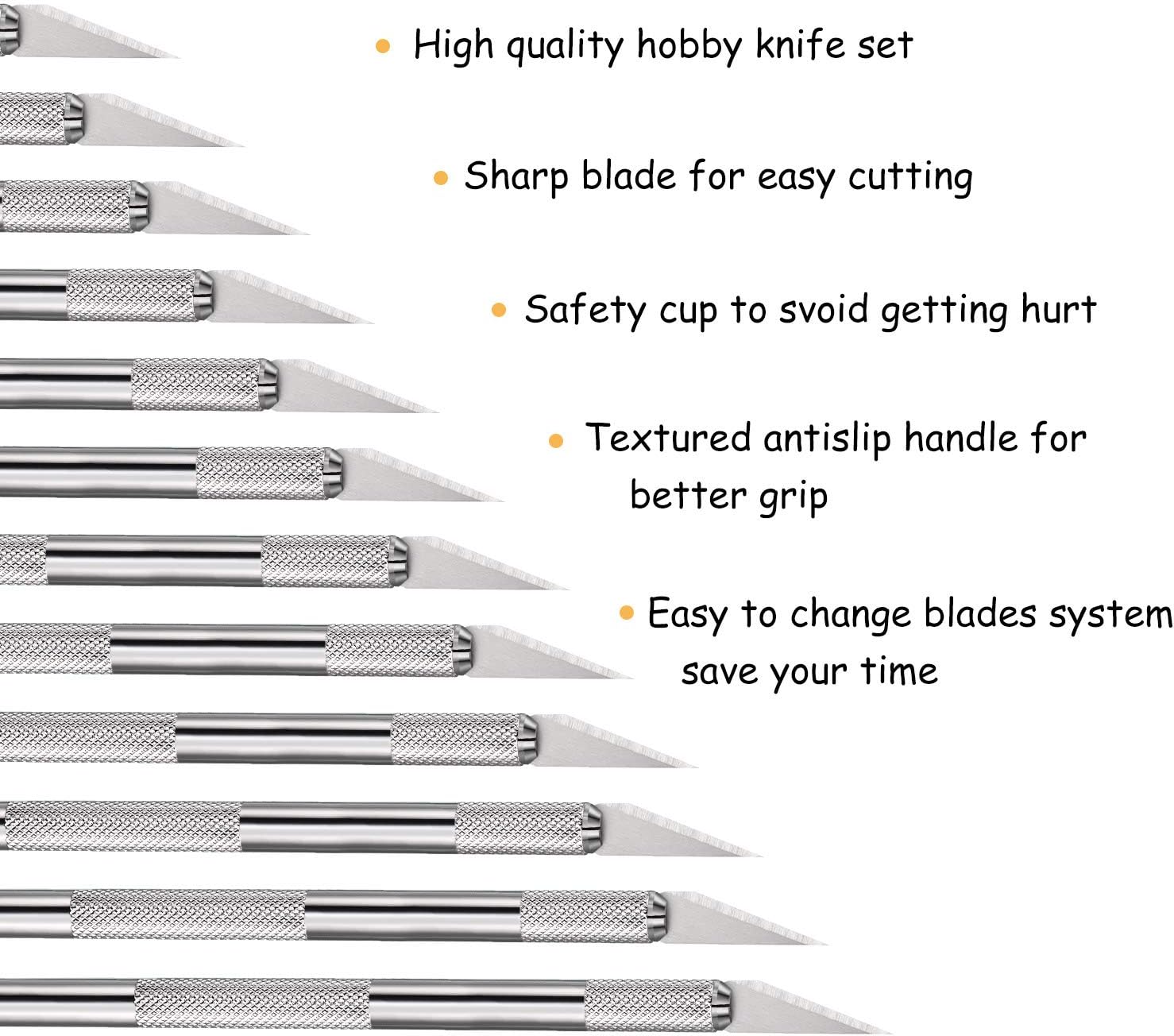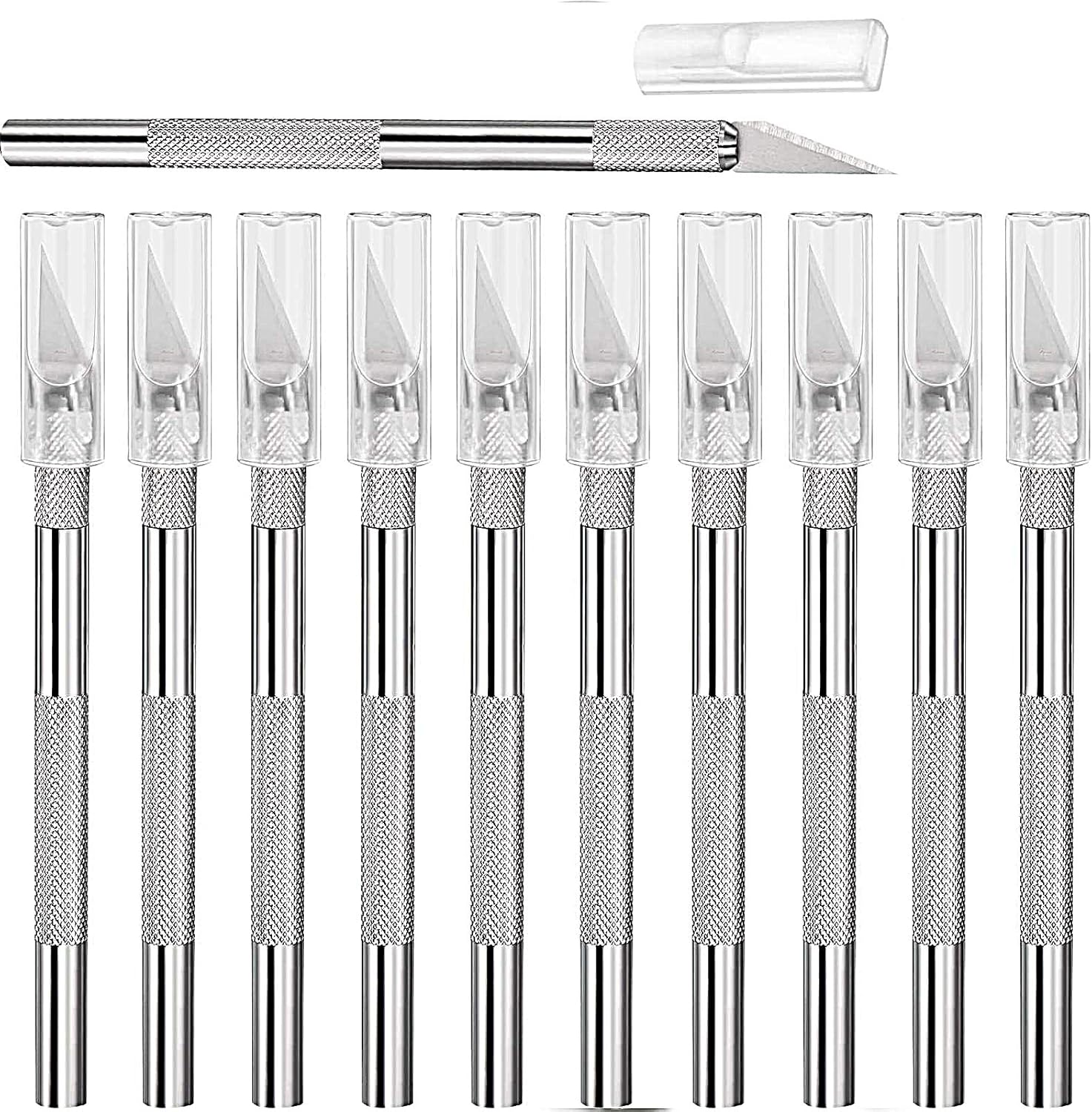 - Good quality: the stainless steel blades are very pointed and the lightweight metal handle make cutting more easy, save your time and energy; Safety cap can protect you from getting hurt when the knife is not applied