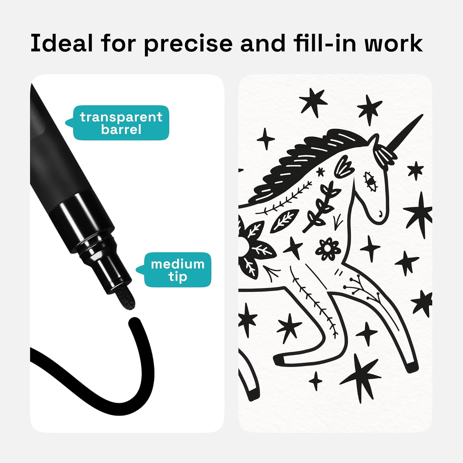 - 3mm Tip for Coloring: Make details with black marker pens fine point. Use the black paint pen or black paint pens fine for outlines, lettering, and adding labels. Fine black markers are easy to activate.