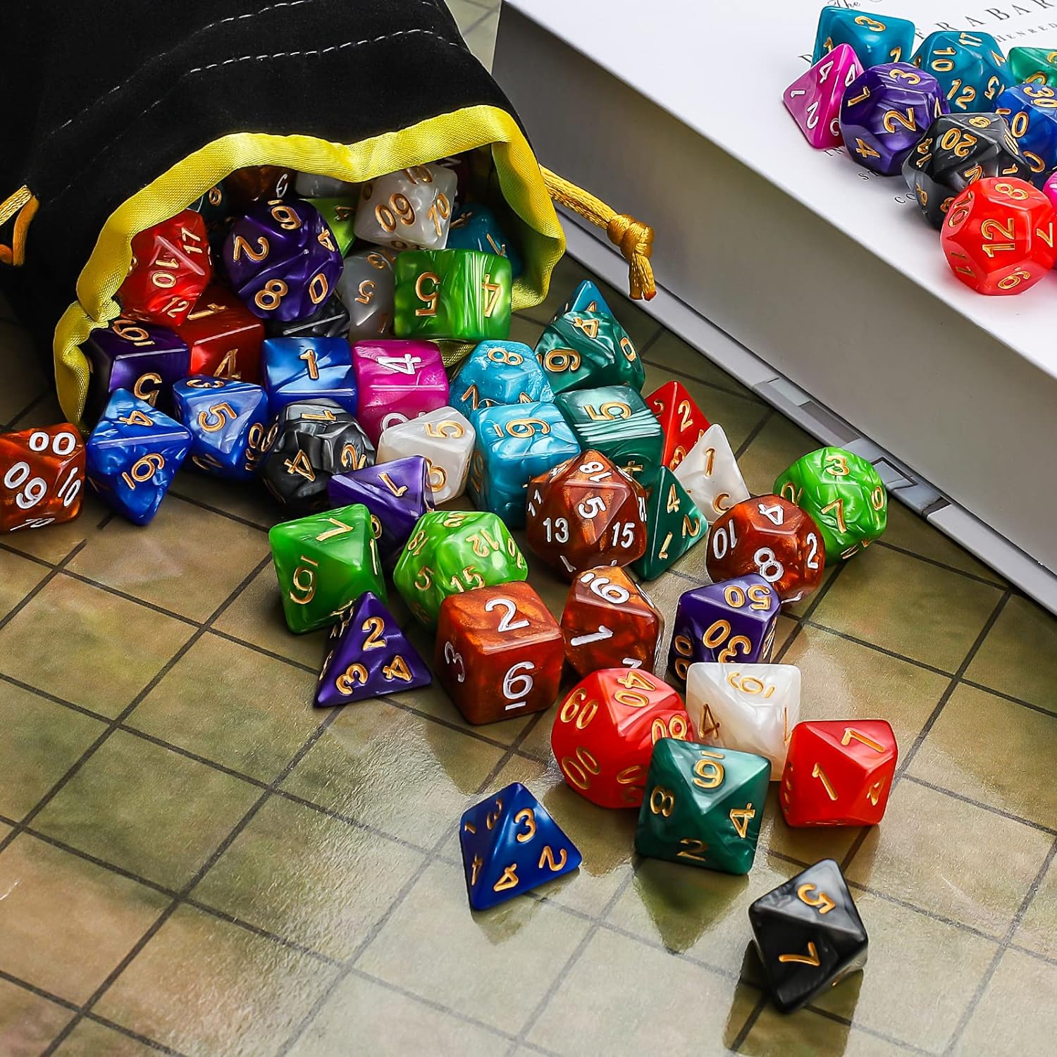 CiaraQ Polyhedral Dice Set with a Big Black Drawstring Pouch, 10 Complete Dice Sets(70 Pieces) of D4 D6 D8 D10 D% D12 D20 Compatible with Dungeons and Dragons DND RPG MTG Table Games