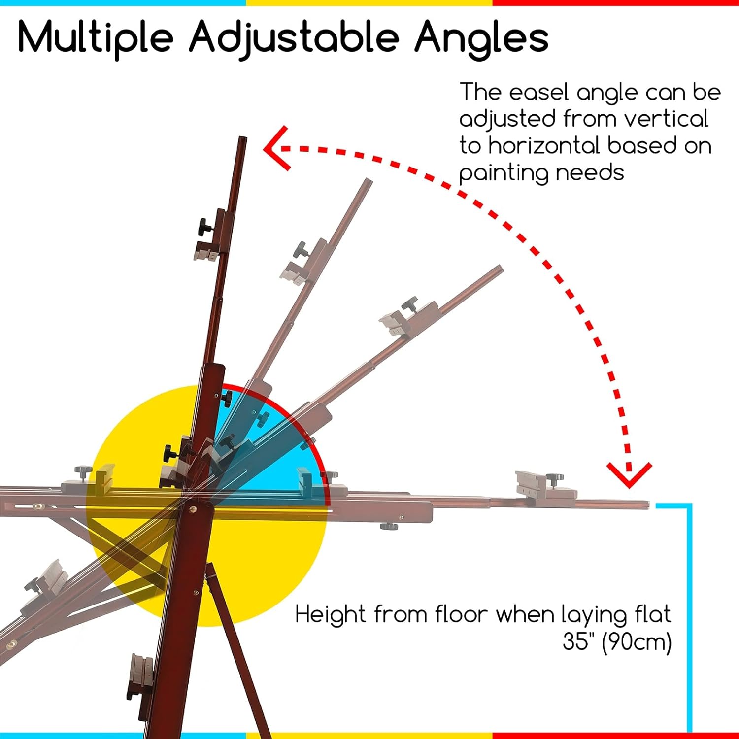 - Adjustable Height and Angle: Floor easel for painting adult contains three sliders that freely adjust to the size of the canvas to meet your painting needs. Its wide stance and broad foundation make it the artist easel of choice for the serious artists who work on a giant scale
