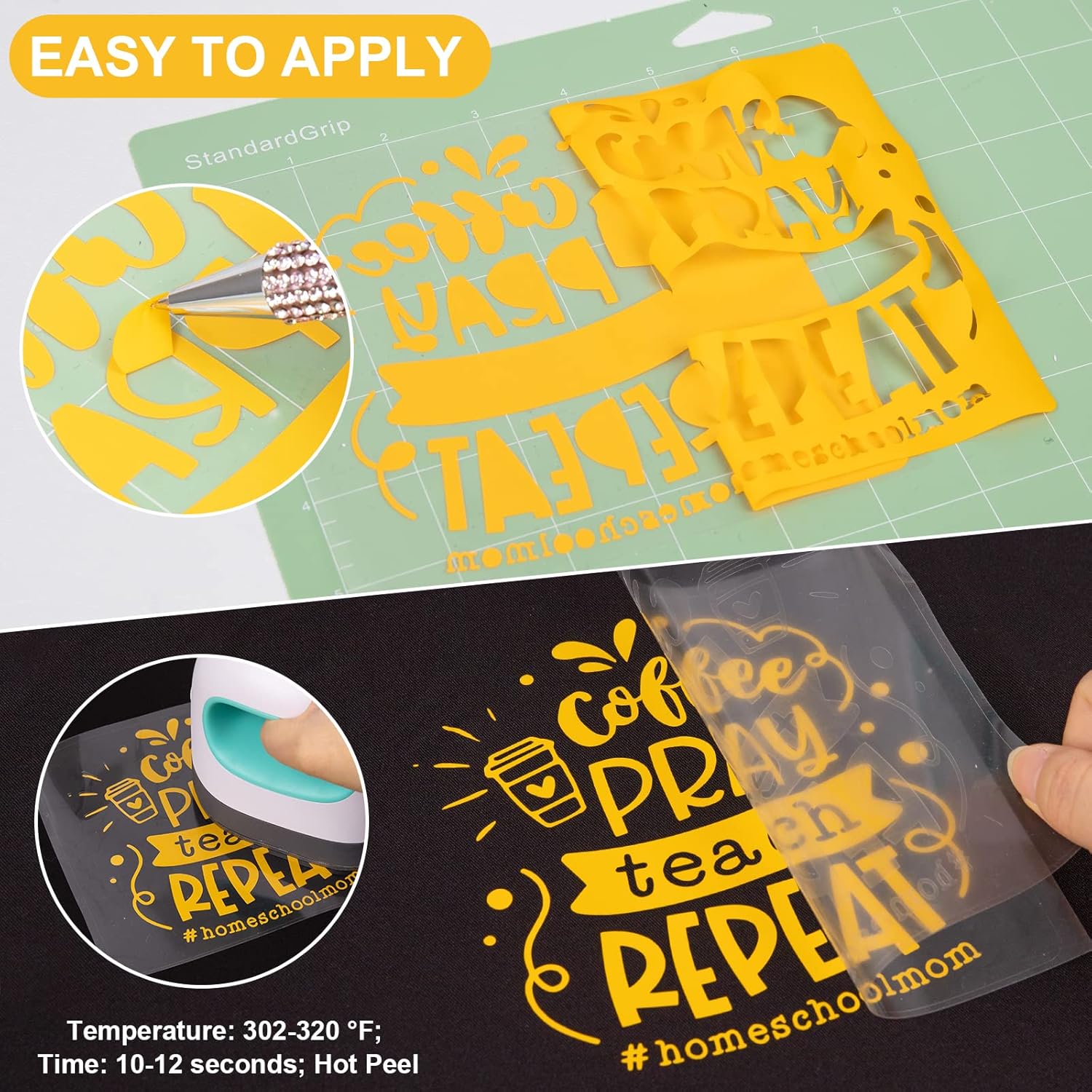 - ✂️EASY TO APPLY: Just use craft cutter and a home iron to get the job done. Apply for approximately 10-12 seconds at 302-320 °F (150-160 °C) and about 10 LBS of pressure. Be sure to cold peel.