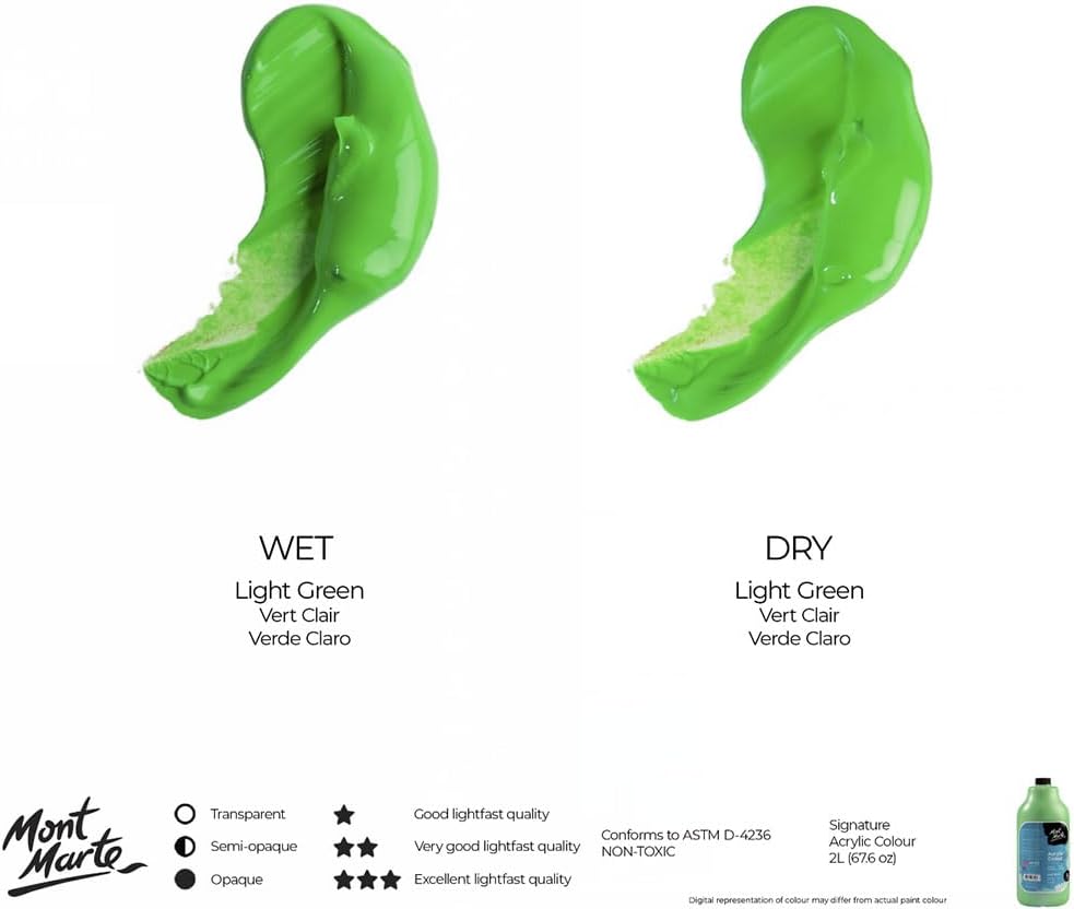 Mont Marte Discovery School Acrylic, Light Green, 1/2 Gallon (2 Liter). Ideal for Students and Artists. Excellent Coverage and Fast Drying. Pump Lid Included.