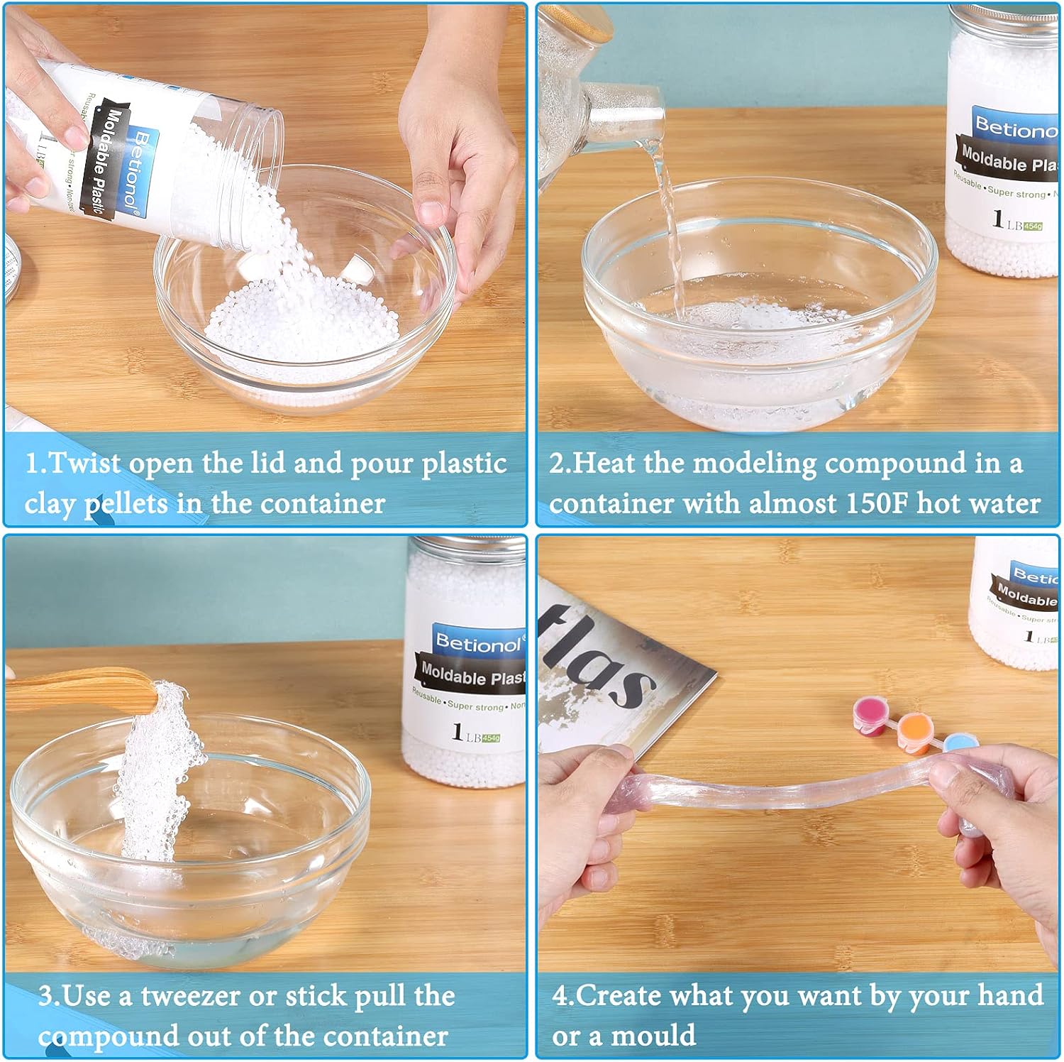 - A COMPLETELY NEW HOBBY: Betionol moldable plastic is a kind of thermoplastic beads. With heating by water, it could be molded by your hands into any kinds of shapes or charactors.