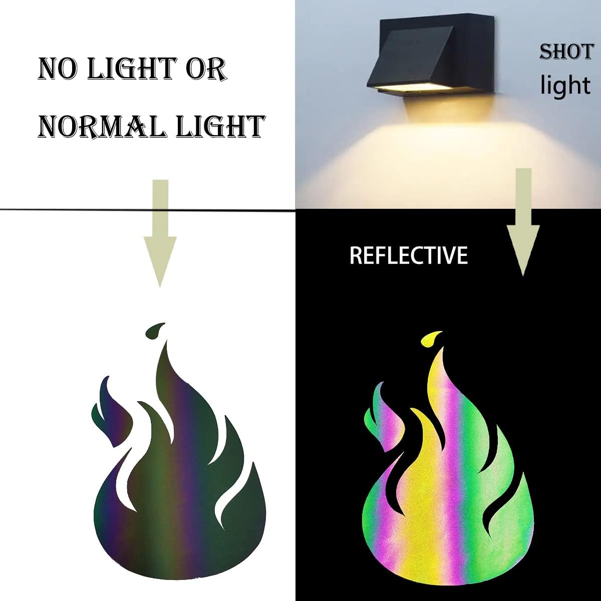 - UNIQUE REFLECTIVE HTV ROLL: Our rainbow reflective iron on vinyl roll glows brilliantly under sunlight or bright bulbs, including flashlights, car lights, and cell phone flashlights. The reflection intensifies with stronger light sources. The classic rainbow htv can be used alone or in combination with other colors