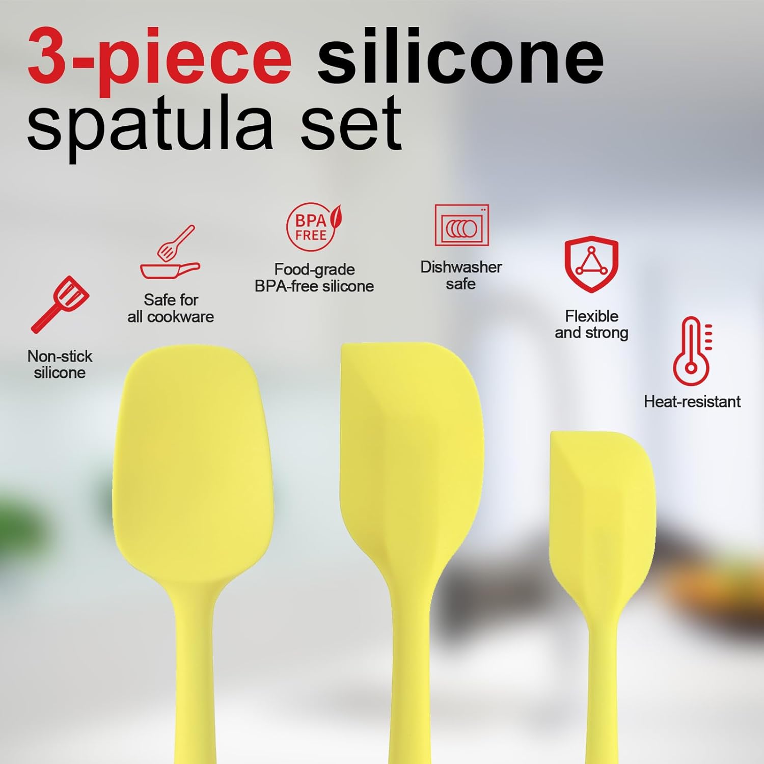 Silicone Spatula Set - Rubber Spatula - 600°F Heat Resistant Baking Spoon & Spatulas(Macaron Yellow)