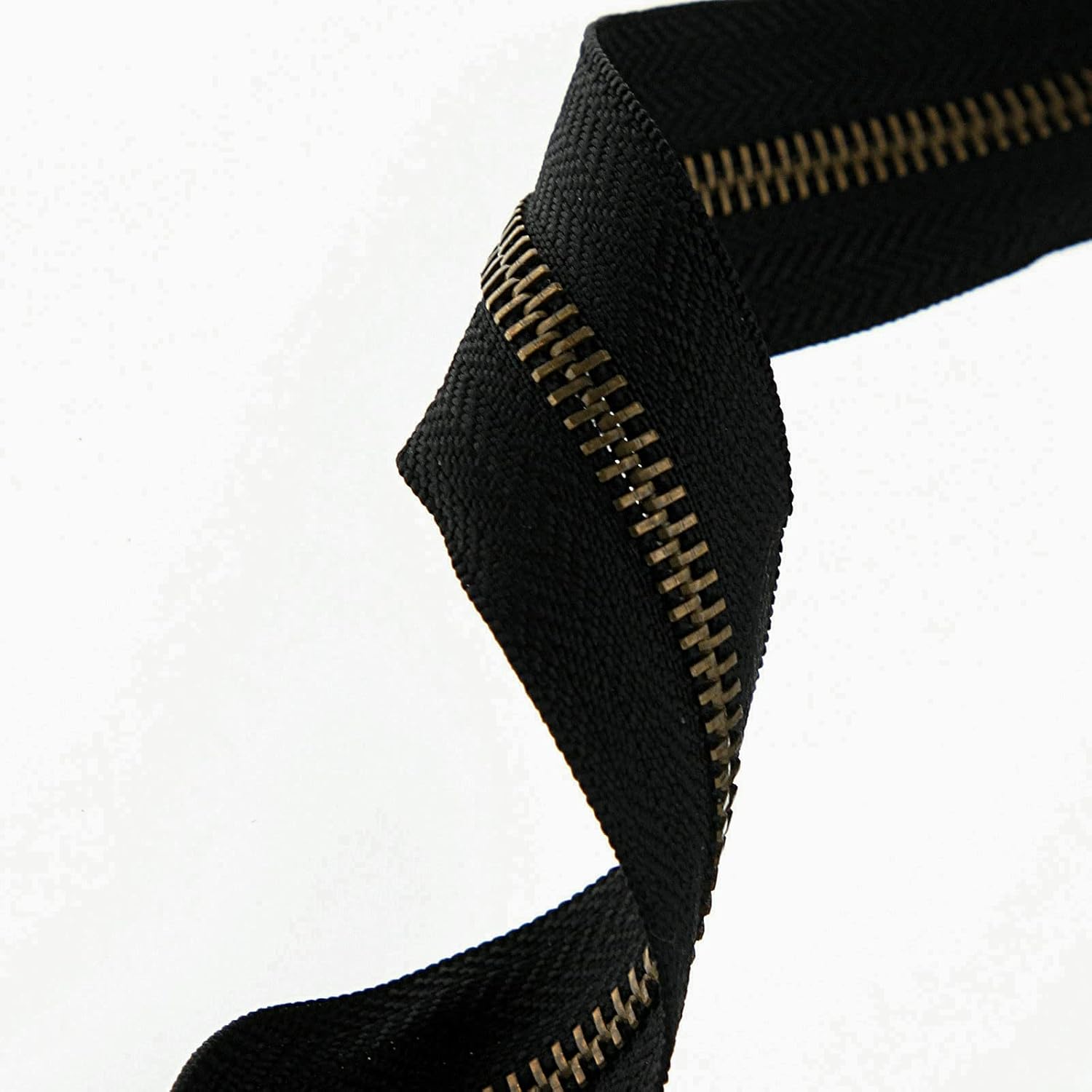 #5 Antique Brass Metal Zippers by The Yard Bulk 2 Yards Black Tape with 10 pcs Sliders Handmade Zipper for Sewing Craft Bag Backpack, Wallets, Purses Leekayer