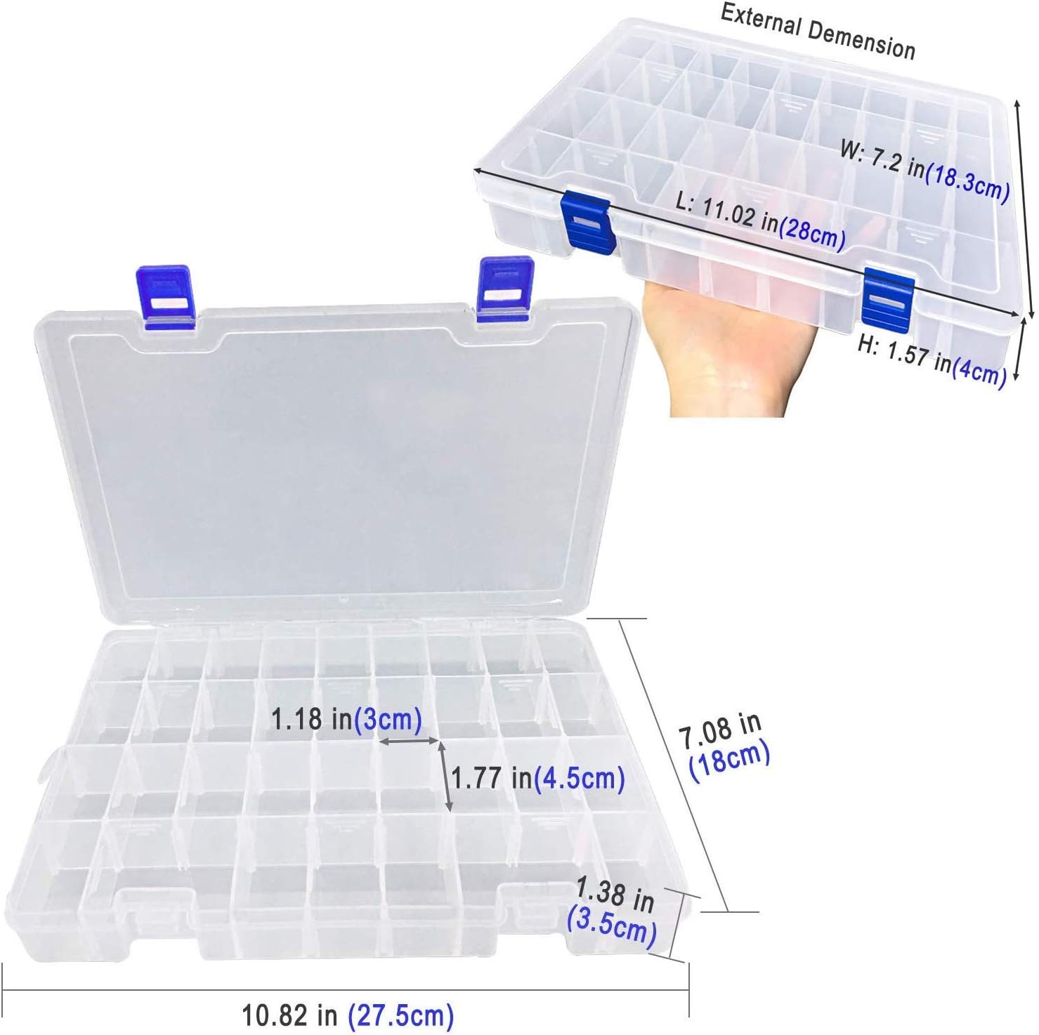 Qualsen Plastic Organizer Storage Box with Adjustable Dividers, Fishing Tackle Box and Bead Organizer Box for Jewelry, Beads, Earrings, Tools, Fishing Hooks, and Small Accessories(34 Grid x 4)