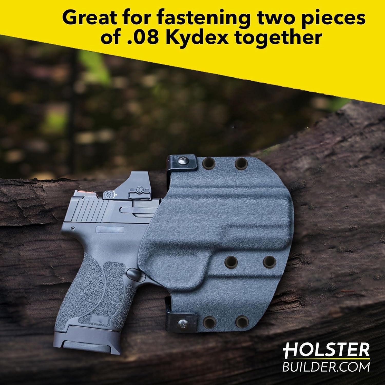 - Kydex Rivets for Secure Attachment: These Kydex rivets are made to be tough and long-lasting, providing a secure way to attach your Kydex holsters, knife sheaths, and other DIY tactical projects. Perfect for making outdoor gear and custom Kydex accessories, they are designed for strong, durable use.