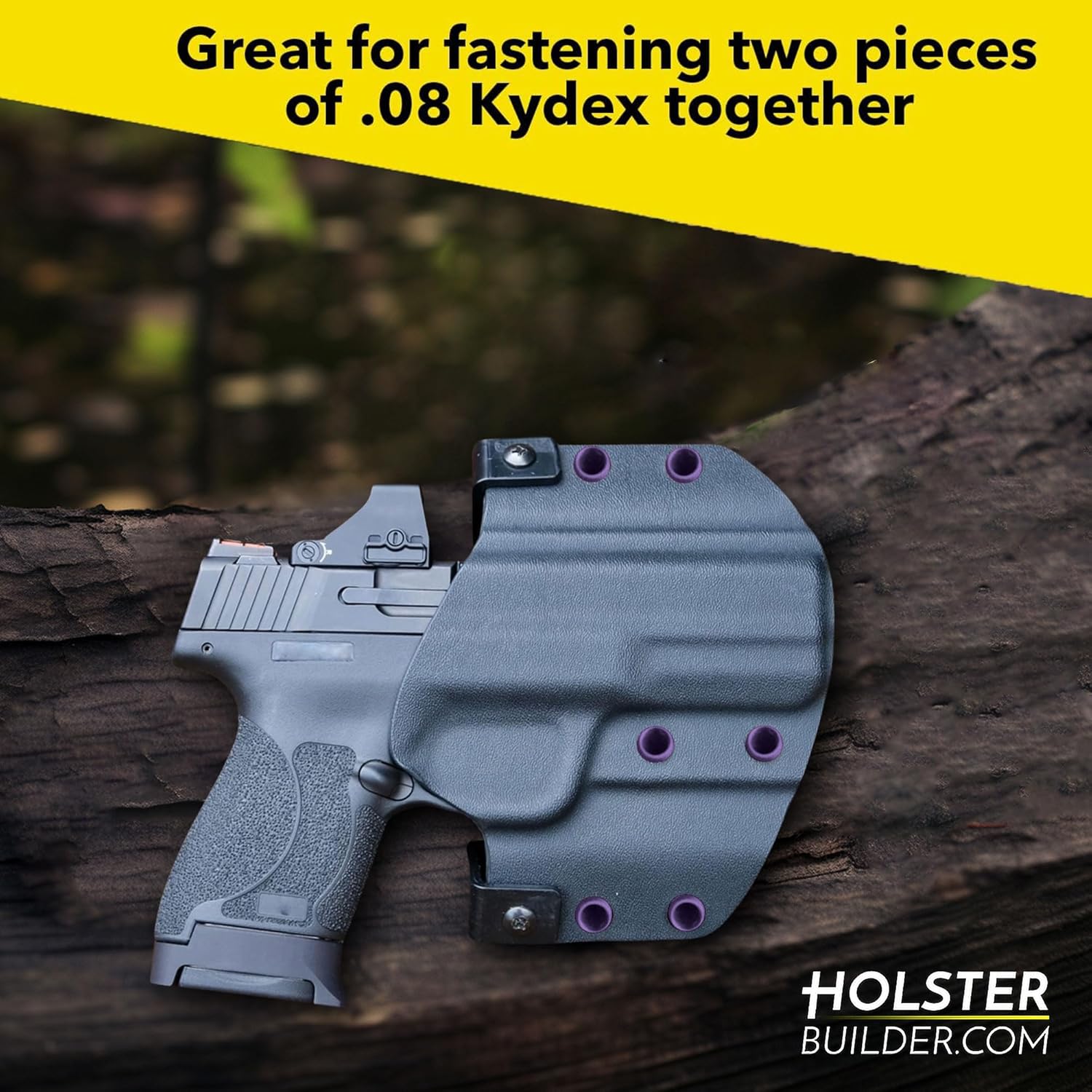 - Kydex Rivets for Secure Attachment: These Kydex rivets are made to be tough and long-lasting, providing a secure way to attach your Kydex holsters, knife sheaths, and other DIY tactical projects. Perfect for making outdoor gear and custom Kydex accessories, they are designed for strong, durable use.