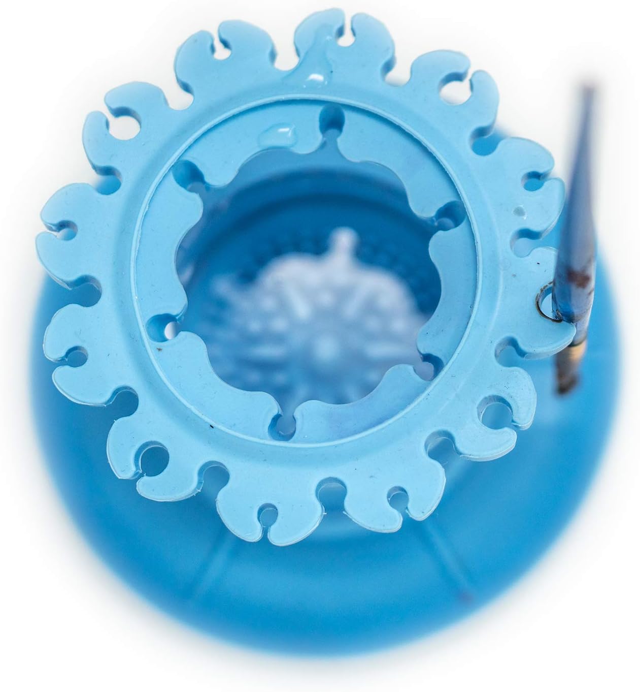 - BUILT-IN BRUSH HOLDER – This paint brush cleaner tool features a flexible, silicone lid with small brush resting areas inside the cup and outside to hold brushes while they’re rinsing out or not in use. The outside of each lid boasts paint brush holders that keep brushes upright and drying off while protecting surfaces from wet paint.