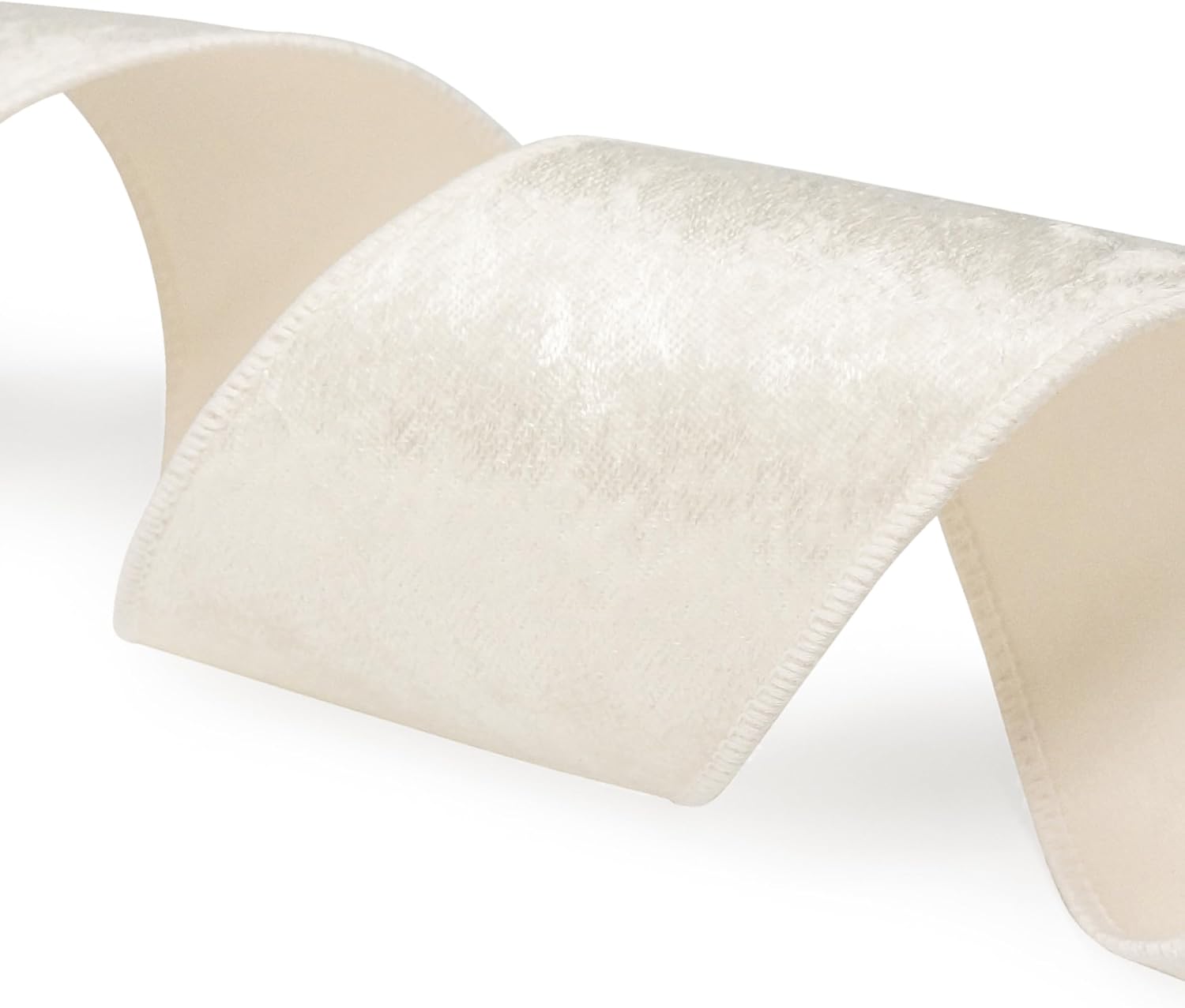 - SIMPLE YET ELEGANT - There is nothing that can accent your craft better than our Ivory Velvet Ribbon 2.5" for crafts. This ribbon matches any type of gift wrapping paper and the texture not only adds to their premium quality. You'll appreciate the ease and finesse with which these Ivory Velvet Ribbon 2.5" glide through your fingers.