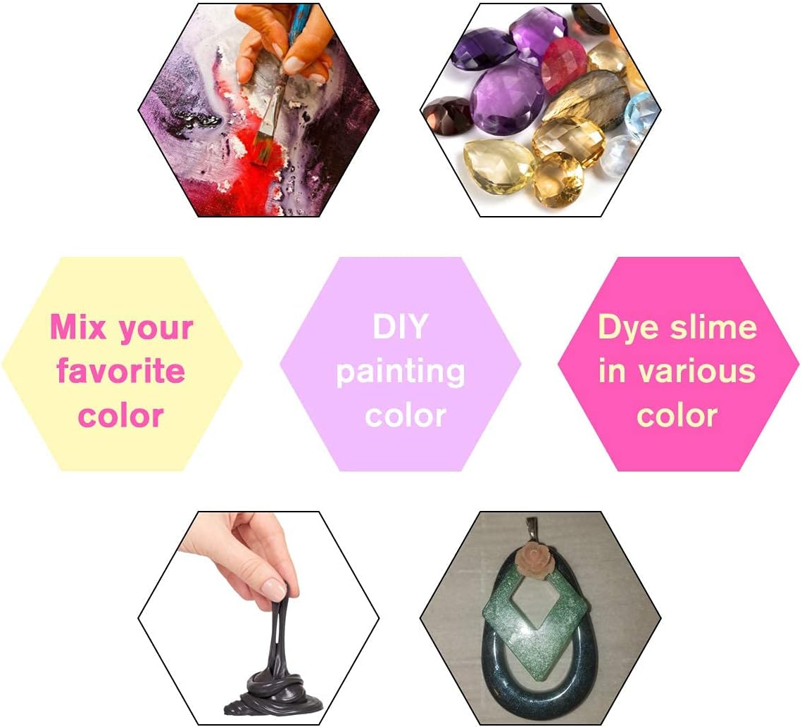 - EPOXY RESIN DYE MICA PIGMENT POWDER :Mica is a natural and organic product, easy to be mixed. MULTI-PURPOSE : For SLIME, EPOXY RESIN DYE, TUMBLER, SLIME, DIY CRAFTS, PAINT, LIP STICK, MAKEUP, LIP BALM, NAIL ART, SOAP, CANDLE MAKING, BATH BOMB, JEWELRY, etc.