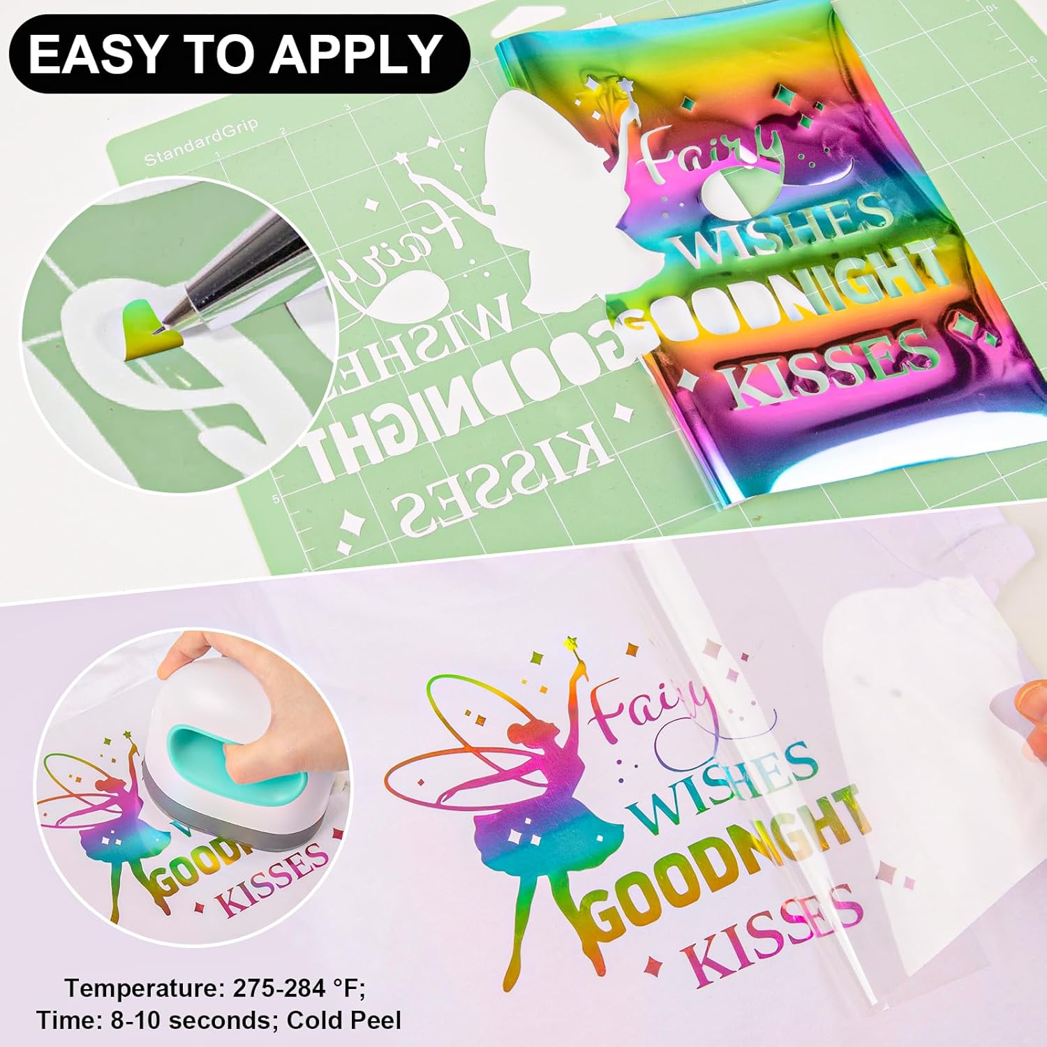 VINYL FROG Metallic Foil HTV Vinyl Roll 12" x5ft Rainbow Heat Transfer Vinyl Holographic Chrome Iron on Vinyl Easy to Cut & Weed DIY Heat Press Design for T-Shirts
