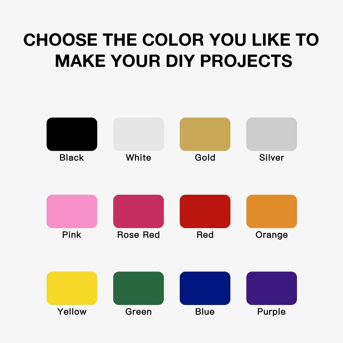 - 【MULTIPLE COLOR COMBINATION 】12in X 5ft 12 rolls iron on vinyl bundle Including white htv, black htv, yellow htv, red htv, purple htv, blue htv, green htv, silver htv, gold htv, orange htv, pink htv, rose red htv and one weeder for gift. Easy to solve the problem of choosing difficulty.