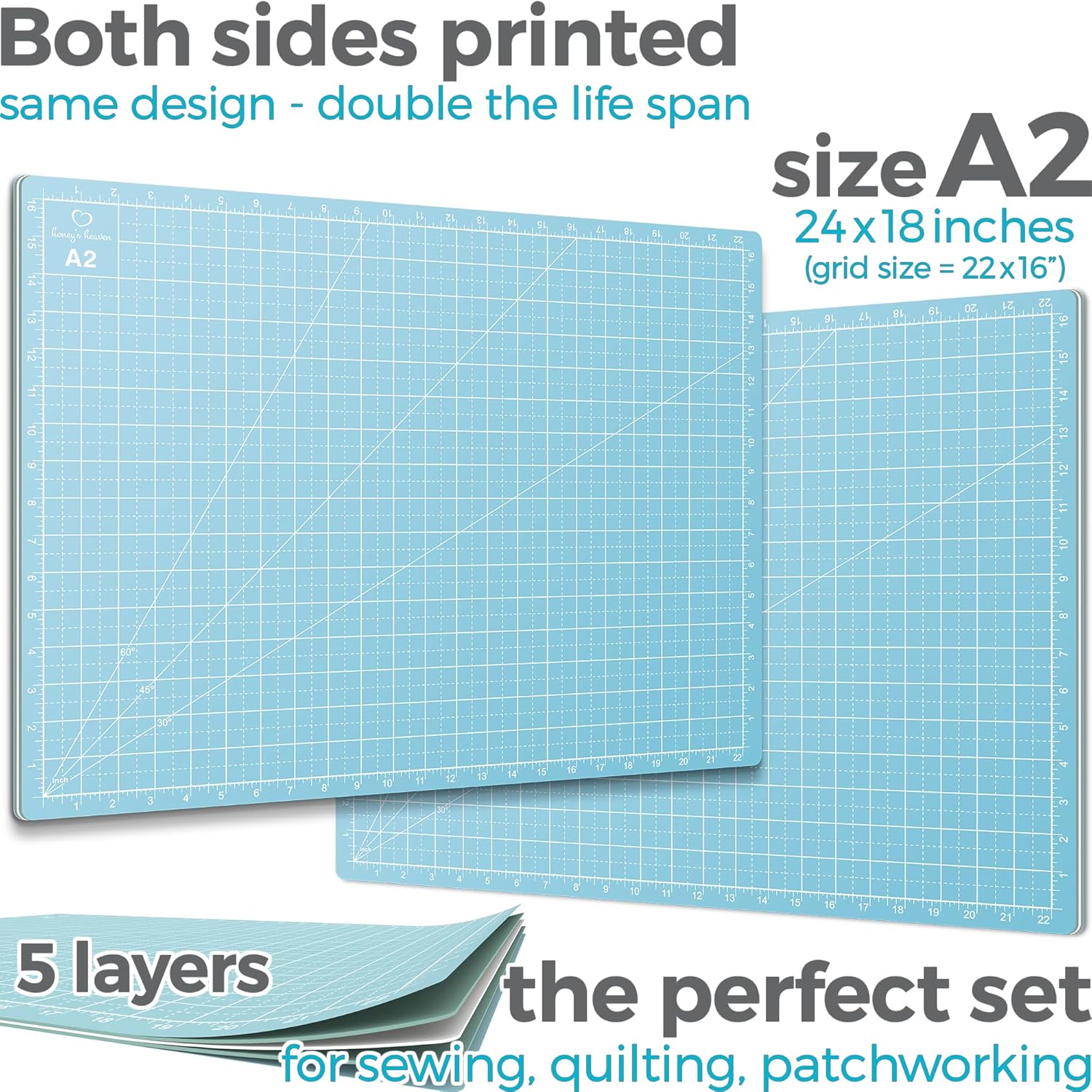 - Self Healing Cutting Mat included. Double sided design, made from durable 5-Ply material for accurate cutting. Cutting Mat size is 24" x 18" (A2), Grid size of print is 22" x 16", thickness is 3 mm.