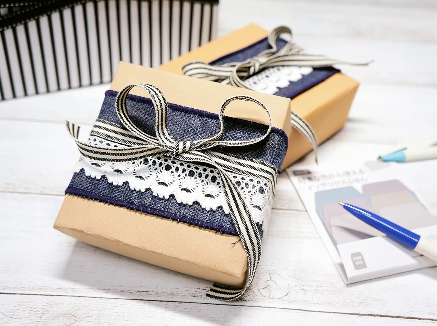 - EASY TO USE - The 10-yard long Ivory Cotton Black Stripes Ribbon 3/8" is enough for all the decorating and accenting your DIY Crafts. The Ivory Cotton Black Stripes Ribbon 3/8" is easy to use and won’t tangle. It can be tied or glued on gift packages and DIY craft projects such as car and chair bow, wreath, flower bouquet.