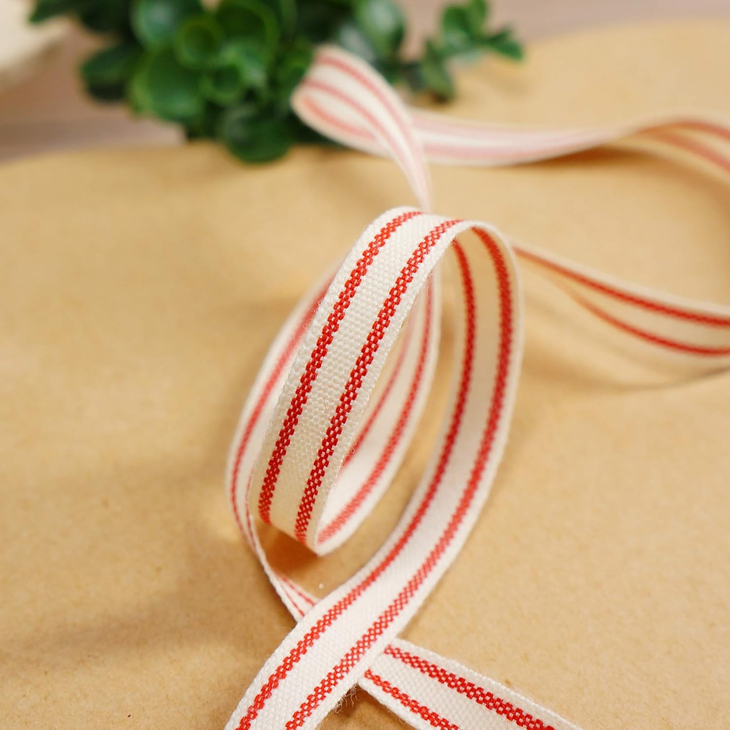 - EASY TO USE - The 10-yard long Ivory Cotton Red Stripes Ribbon 3/8" is enough for all the decorating and accenting your DIY Crafts. The Ivory Cotton Red Stripes Ribbon 3/8" is easy to use and won’t tangle. It can be tied or glued on gift packages and DIY craft projects such as car and chair bow, wreath, flower bouquet.