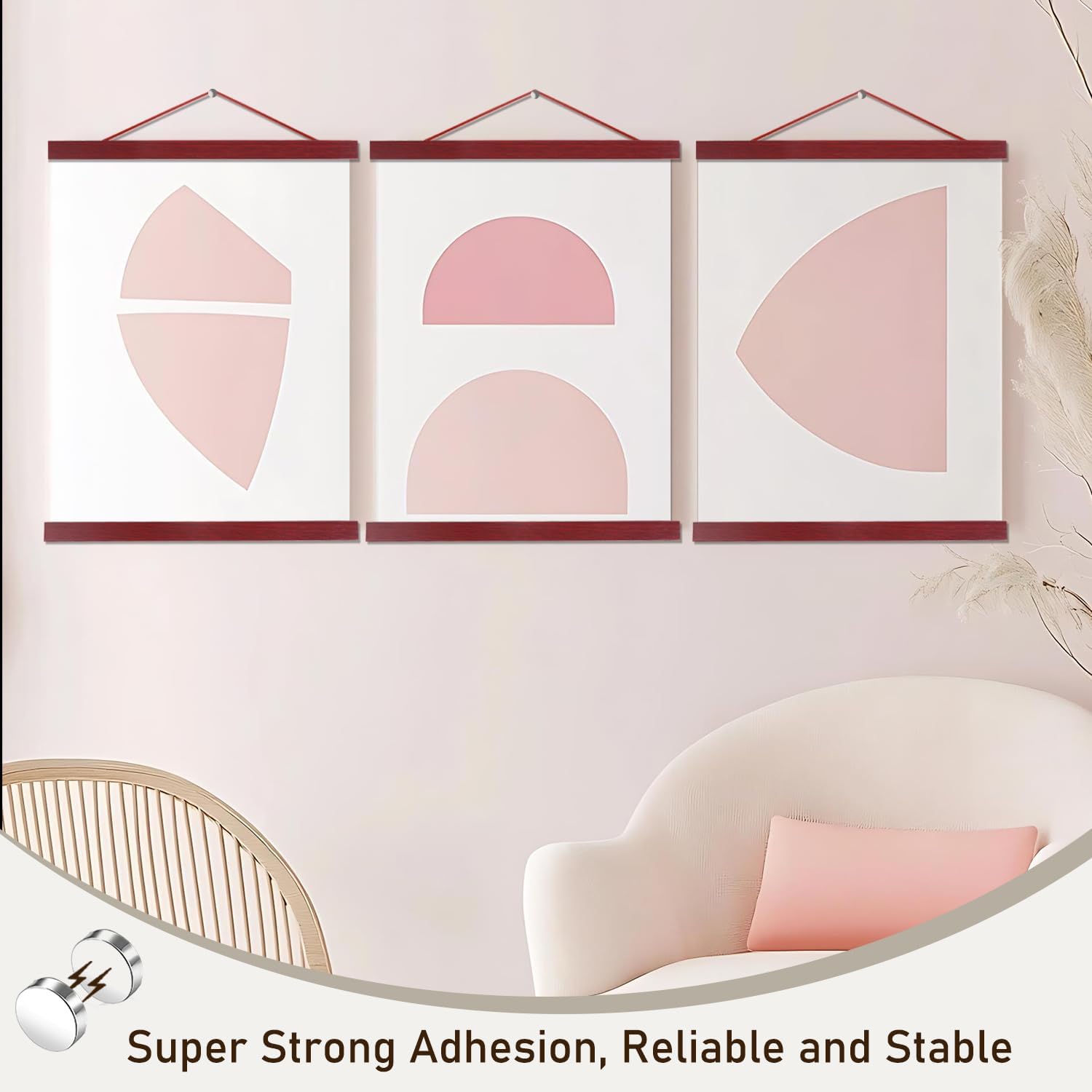 Artmag Magnetic Poster Hanger Frame, 40x27 40x30 40x60 Light Wood Wooden Magnet Canvas Artwork Print Poster Hangers Frames Hanging Kit (Mahogany, 40")