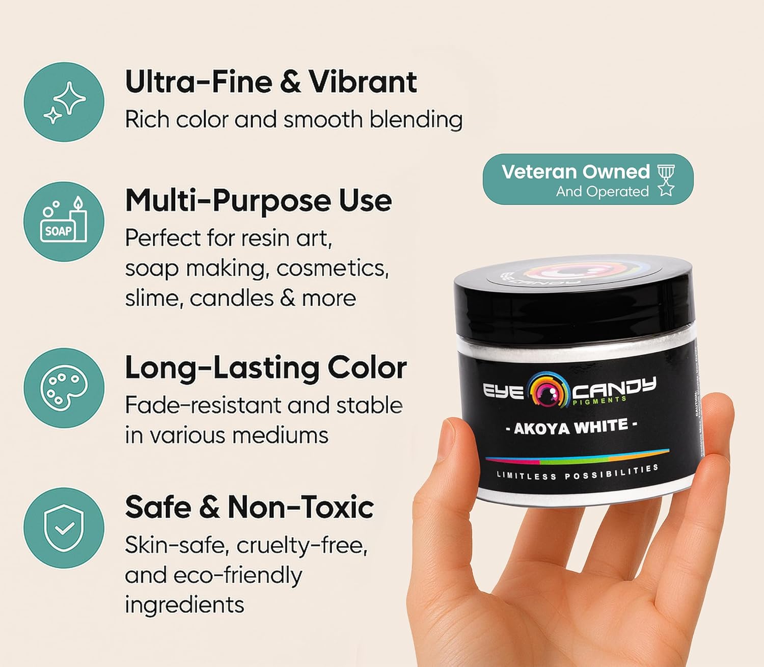 Eye Candy Pigments Premium White Mica Powder - Akoya White (50gr) - for Epoxy, Resin, Soap, Paint, Woodworking, Acrylic Pouring, Bath Bombs, Fishing Lures - DIY Arts and Crafts Additive
