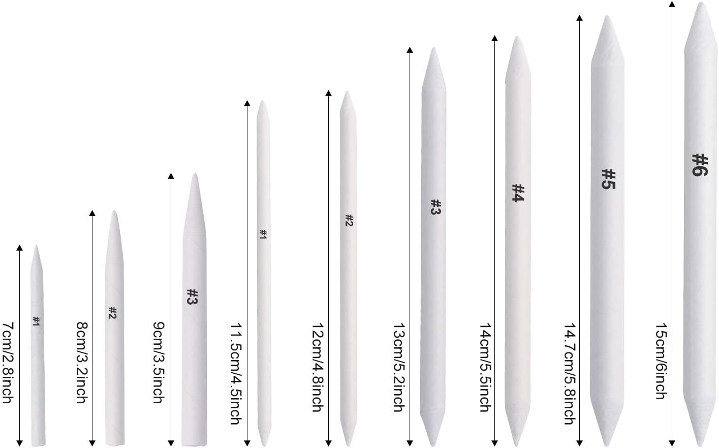 - Variety of Sizes: Blending stump sizes : #1, #2, #3, #4, #5, #6, Tortillion sizes: #1, #2, #3. The assorted sizes are enough for different aspects of your artwork, especially suitable for drawing beginners, students, artists and more