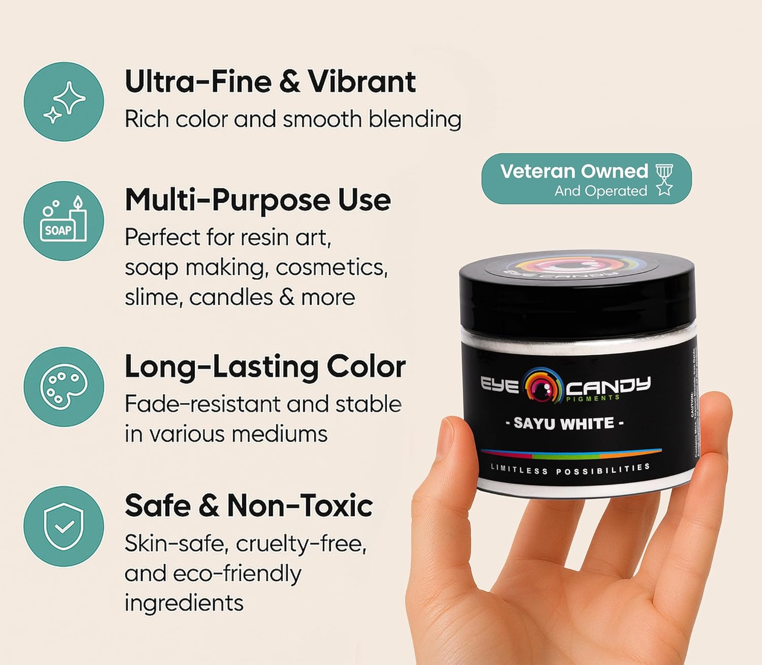 Eye Candy Pigments Premium White Mica Powder - Sayu White (50gr) - for Epoxy, Resin, Soap, Paint, Woodworking, Acrylic Pouring, Bath Bombs, Fishing Lures - DIY Arts and Crafts Additive
