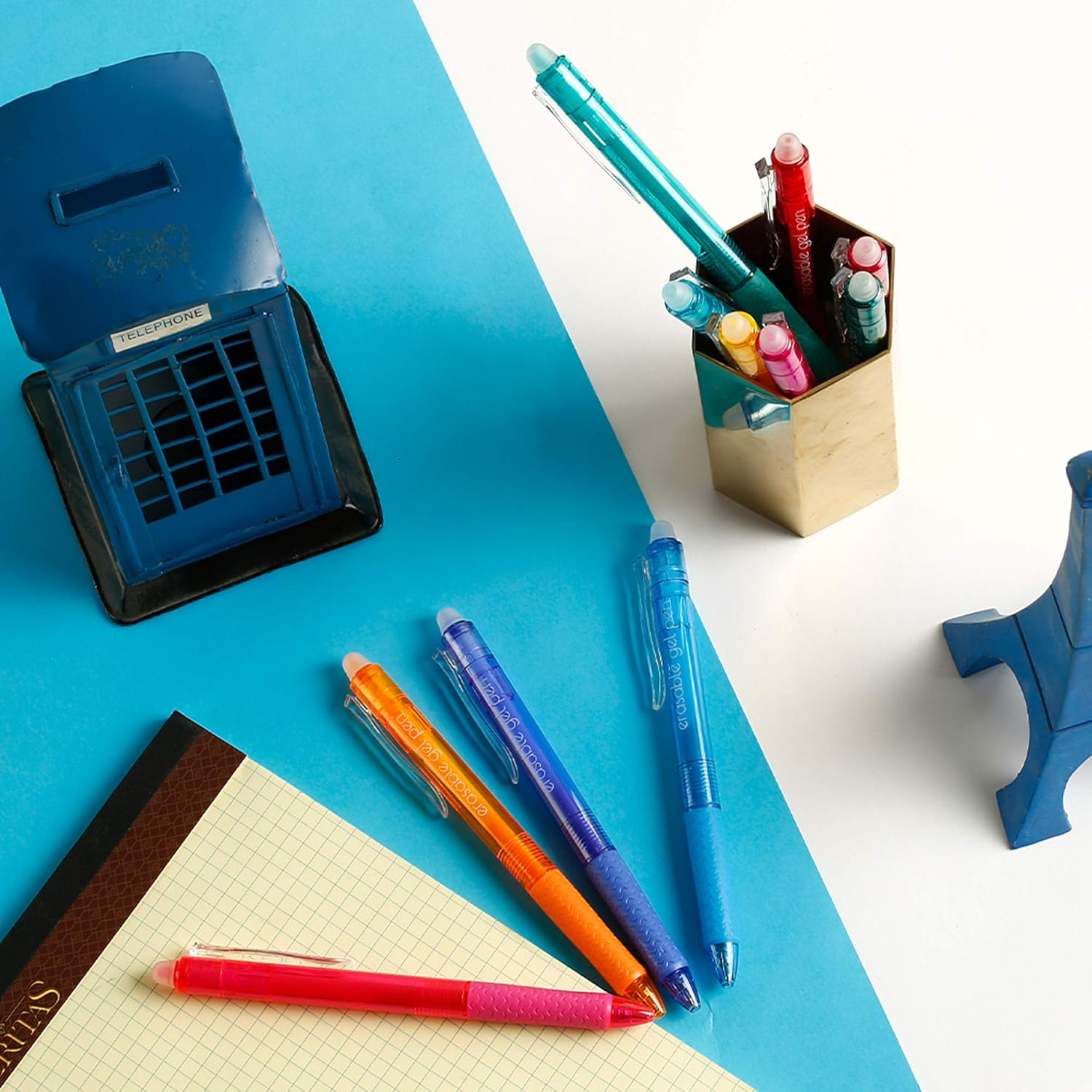 - 【Smooth Writing and Rewriting】: Gel Pens are erasable with the eraser at the top and retractable by pressing the side clicker clip down.They write like gel pens,and erase like pencils (Please erase after the ink is totally dried.). It leaves no room for the mistake or a hole in the paper. Keep your paper or books neat and clean.