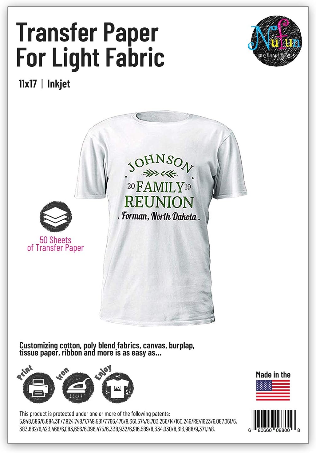 NuFun Activities Inkjet Printable Iron-On Heat TShirt Transfer Paper 11x17 (50, Light Fabrics)