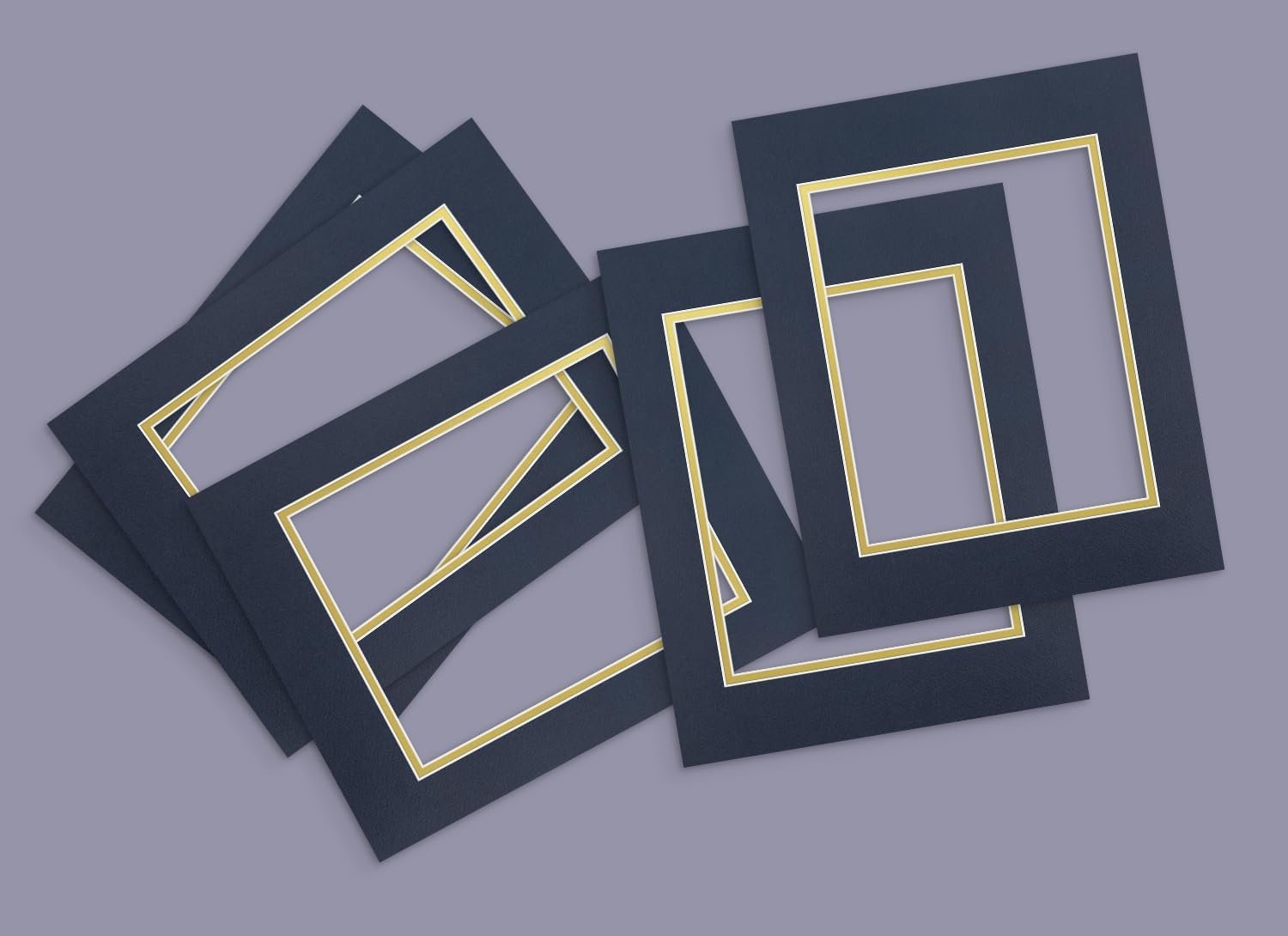 Golden State Art, 11x14 Double Mats for 8x10 - for Photos, Pictures, Frames - Acid-Free, 5 Pack, Dignity Blue Over Old Gold
