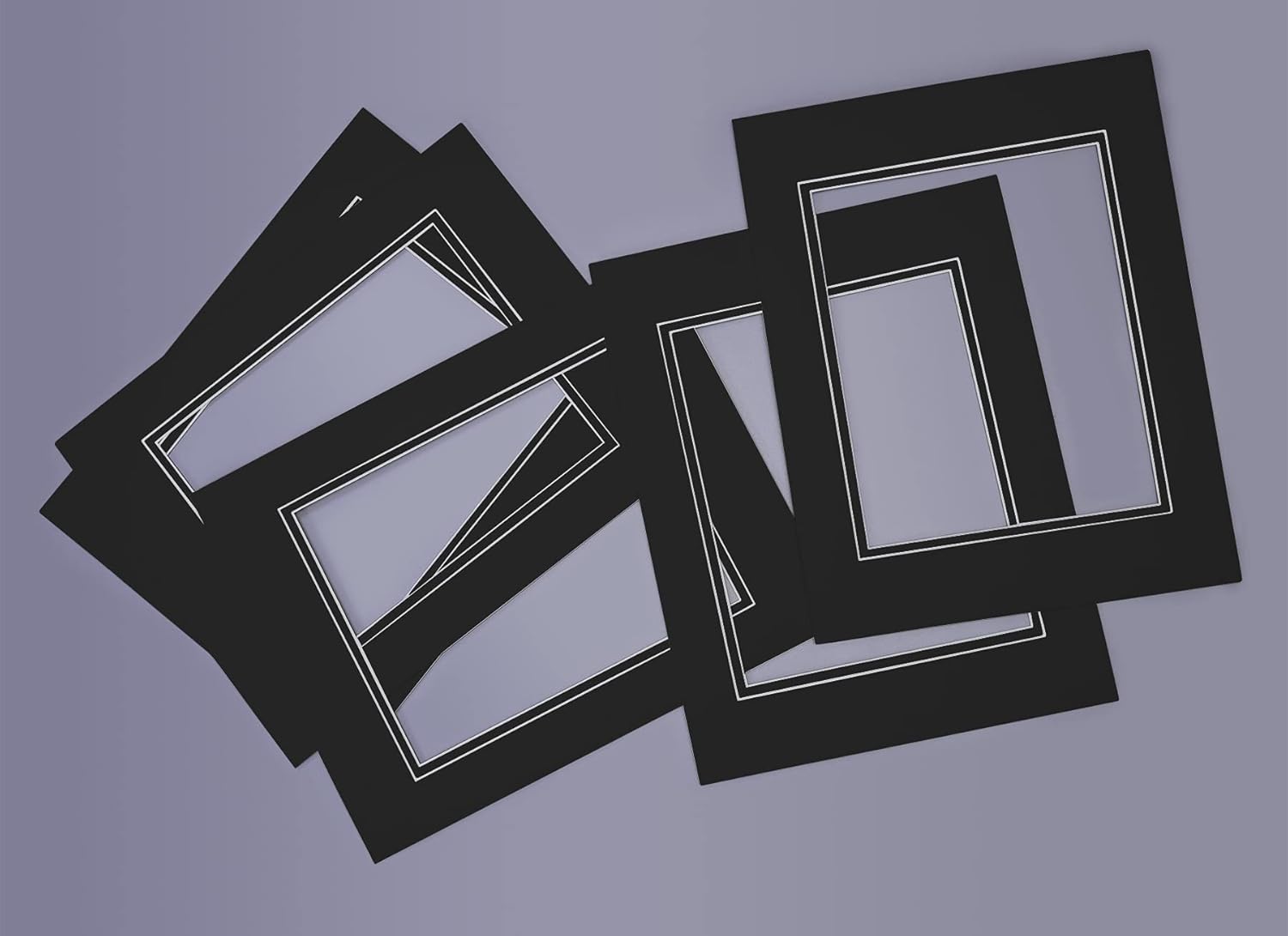 Golden State Art, 11x14 Double Mats for 8x10 - for Photos, Pictures, Frames - Acid-Free, 5 Pack, Black Over Black
