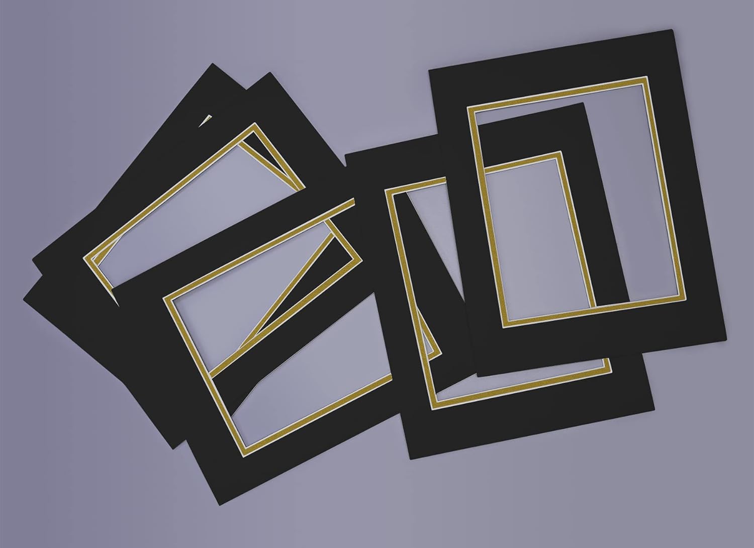 Golden State Art, 11x14 Double Mats for 8x10 - for Photos, Pictures, Frames - Acid-Free, 5 Pack, Black Over Old Gold