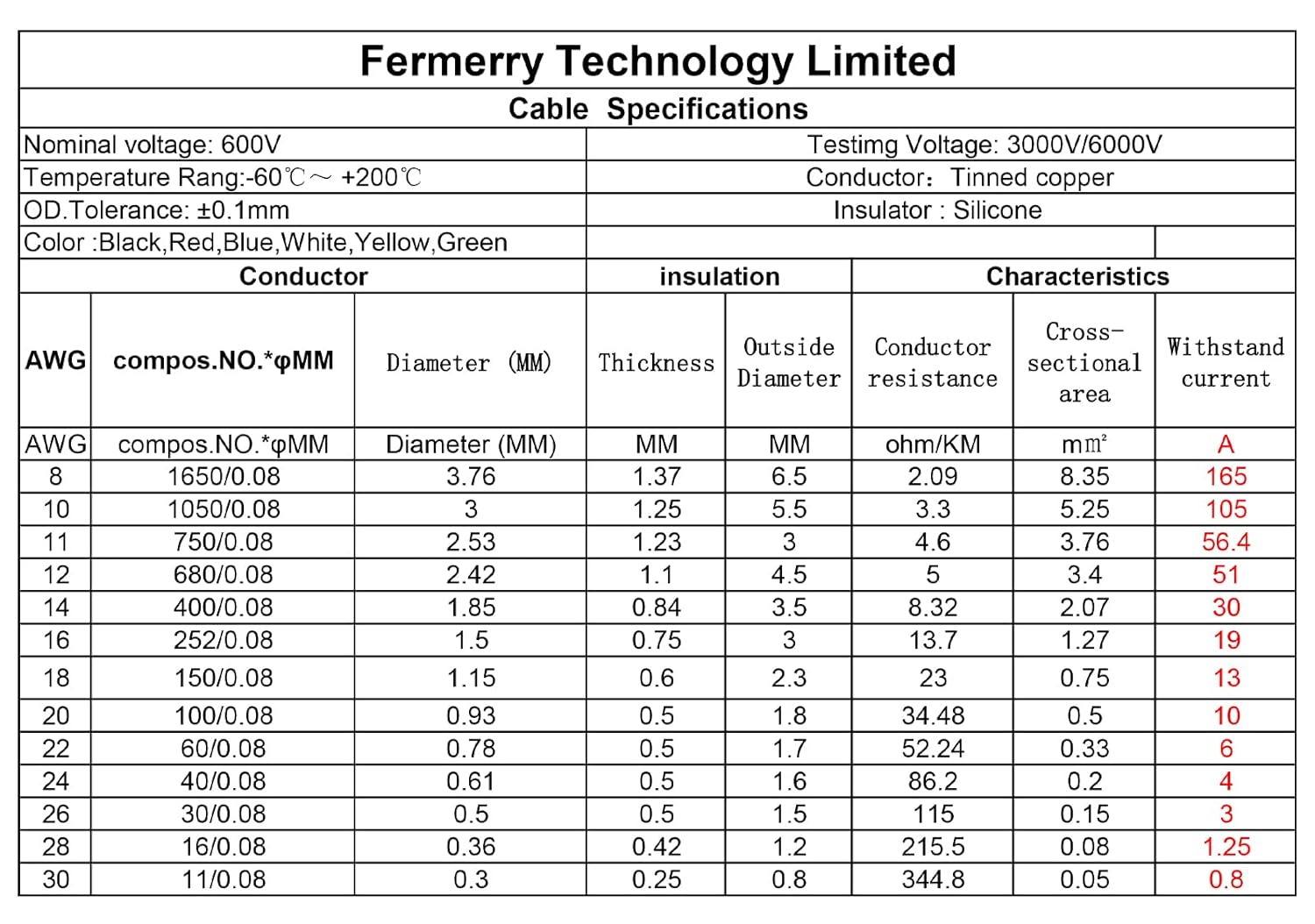 - Application-Fermerry silicone wires are widely used in LED lighting, electrical and electrical equipment, aluminum batteries, RC batteries, model wiringz harnesses, instrumentation internal connections, large transformers and motors connecting equipment with wires,etc