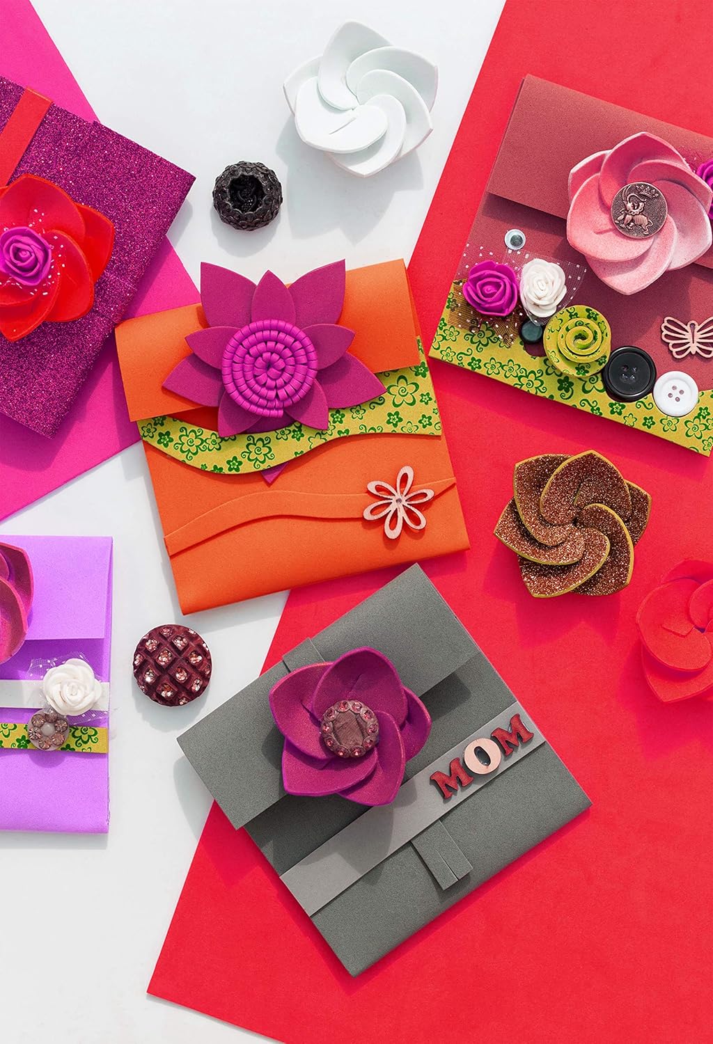 - 100-PACK: 5.5 x 8.5-inch sheets of colored EVA foam in 20 beautiful colors: 5 each of red, dark red, fuchsia, pink, orange, yellow, green, dark green, lime green, teal, blue, dark blue, light blue, purple, orchid, lavender, brown, gray, black, and white.