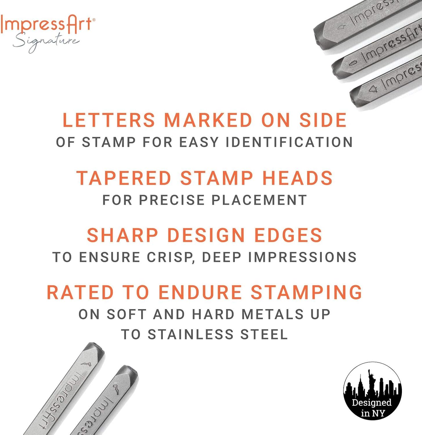 - π Professional quality metal stamp, with the highest standard for durability and alignment - extra sharp character design for a crisp & clear result. Design marked on the side of the stamp for easy identification & orientation.