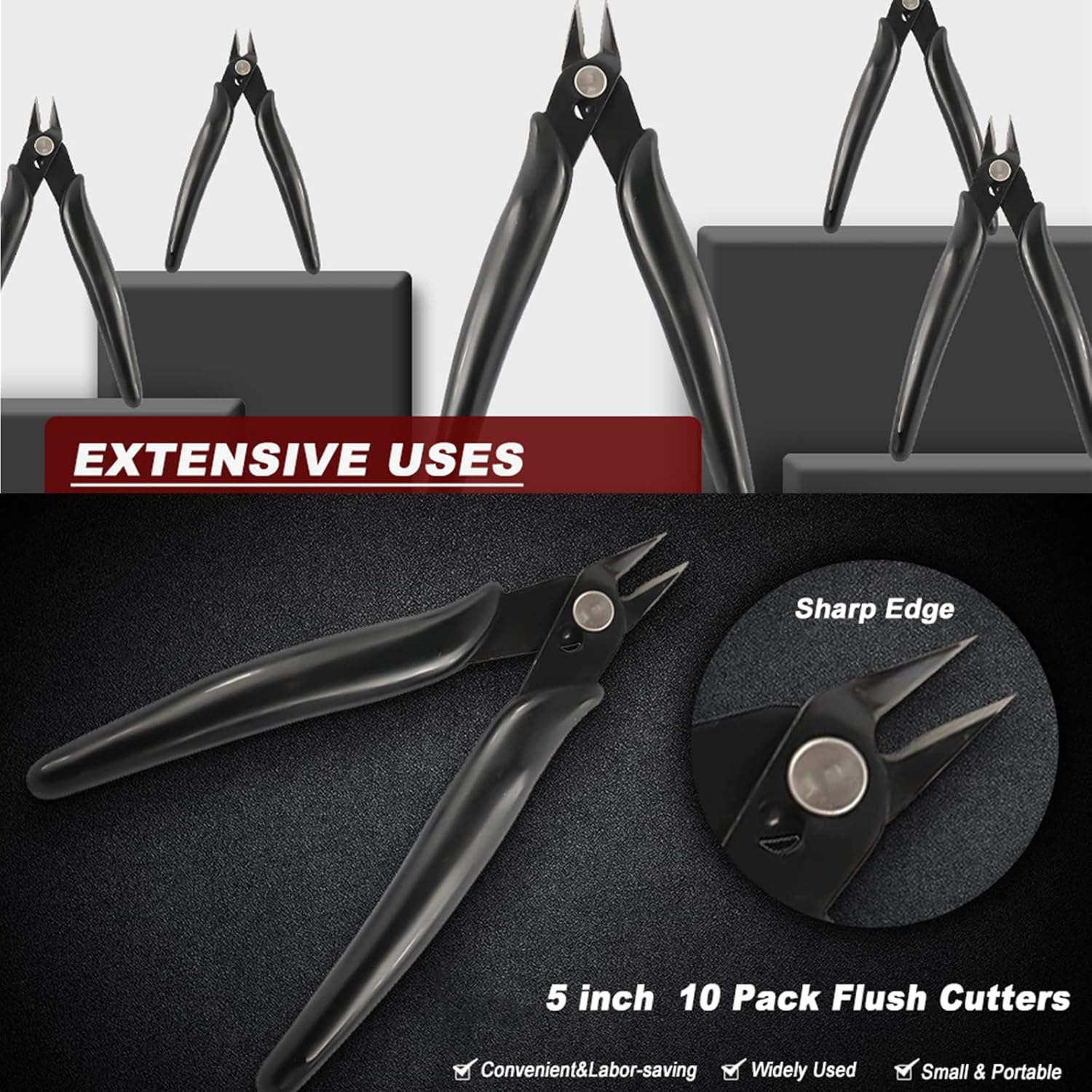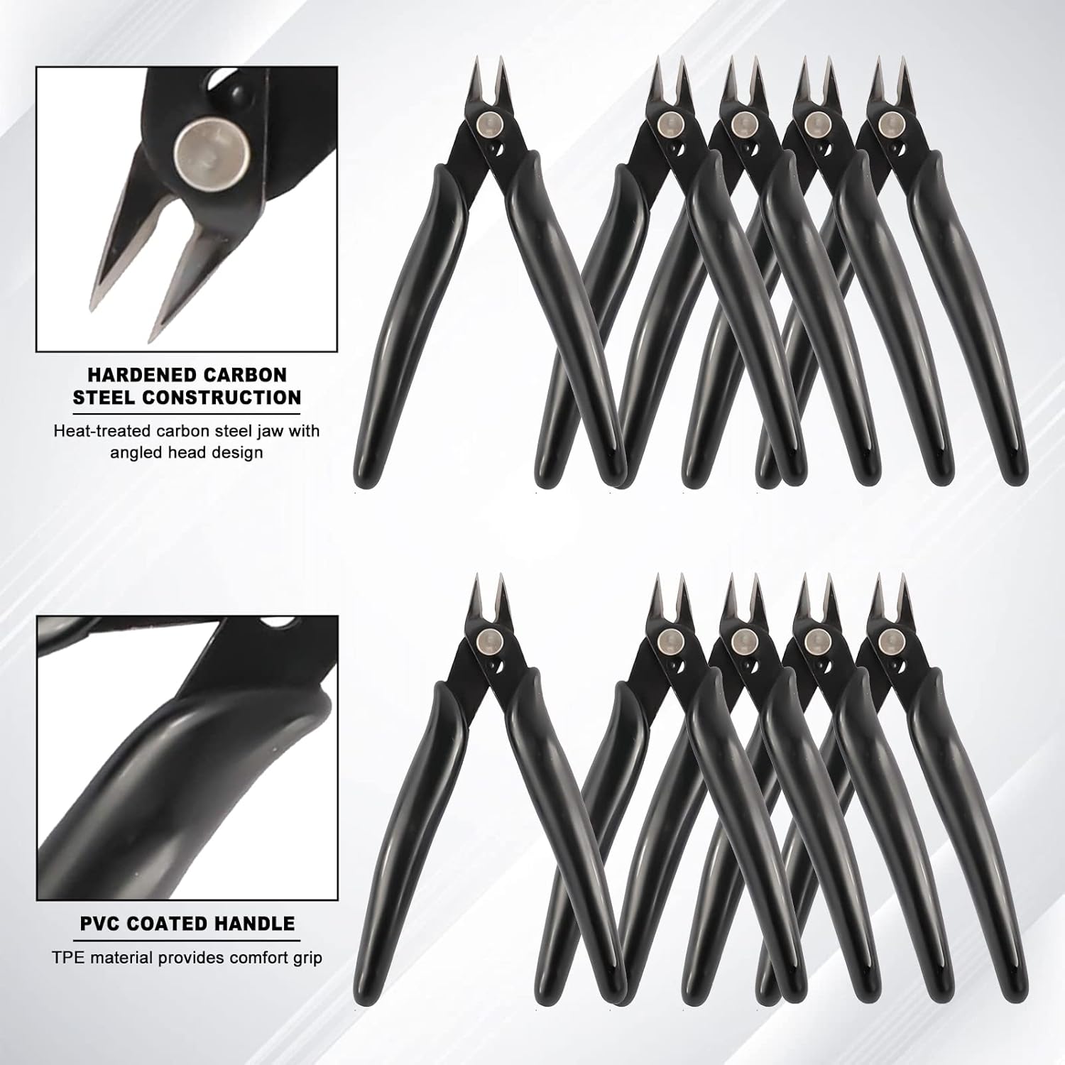 YaeCCC 10 Pack Wire Cutters Black Diagonal Cutting Pliers for Electronic, Model, Jewelry Making, 170 Flush Cutter 5 inch