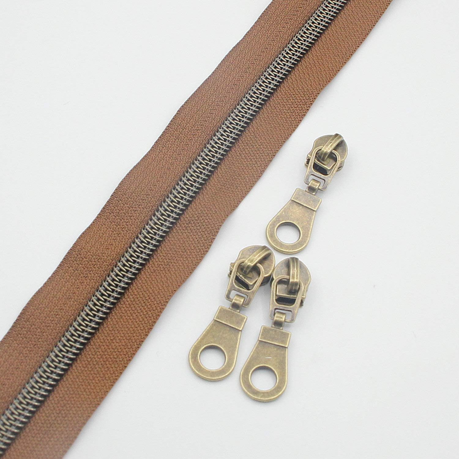 - #5 Antique brass Teeth Nylon Coil Zippers By The Yard Bulk for DIY Sewing Tailor