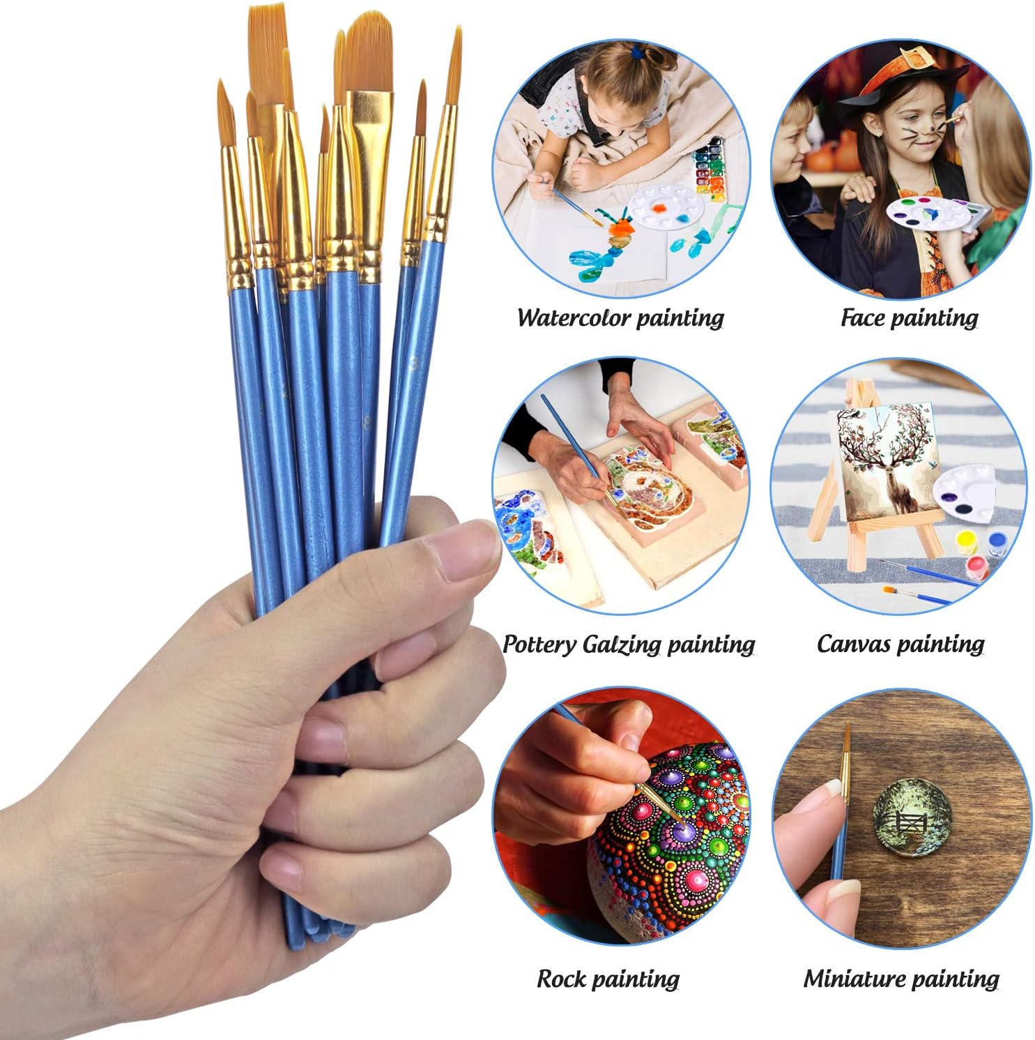 - Versatile for Multiple Art Mediums & Projects: These nylon brushes perform exceptionally well with acrylics, watercolors, oils, gouache, and enamels. The variety of shapes and sizes allows for smooth strokes, fine details, and broad coverage, ideal for canvas painting, craft projects, model work, and general art creation.