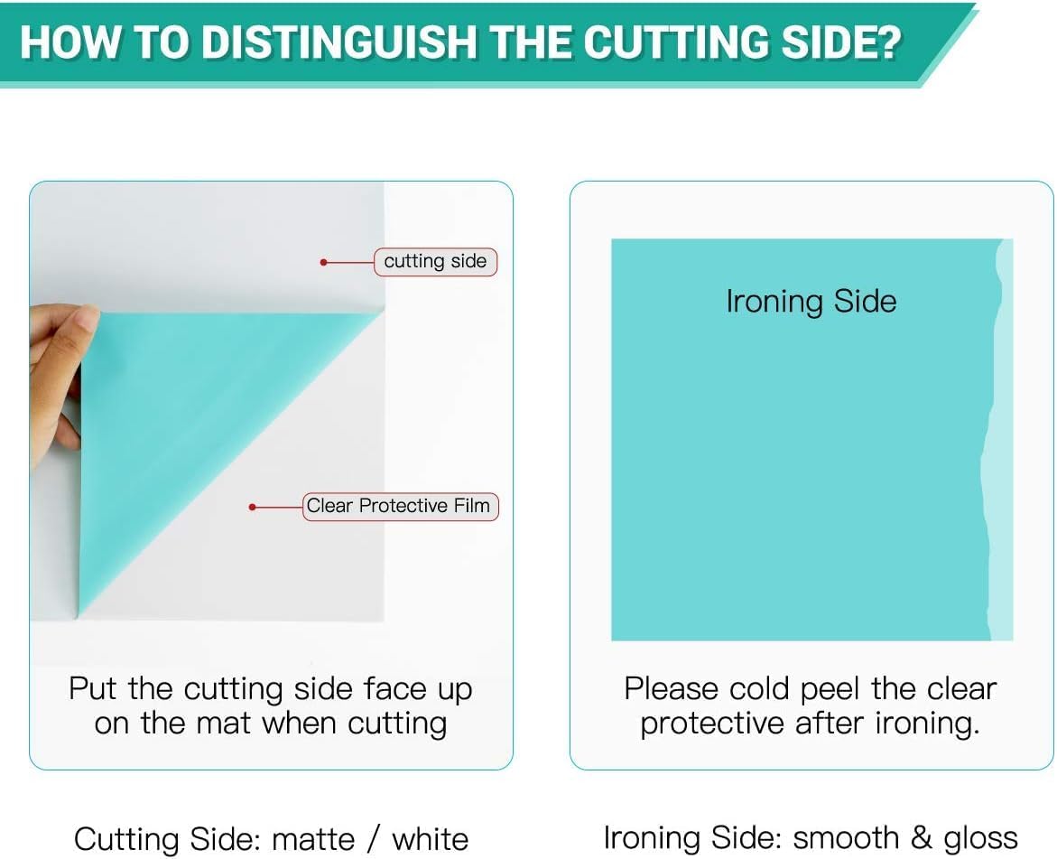 - 【SUPER EASY TO CUT & WEED& TRANSFER】Our HEAT TRANSFER VINYL is thin but with an excellent cutting application feature. The white backing is easy to distinguish the cutting side, and you can follow the instructions and set up suitable parameter with cutters, and then easy to weed and complete the complex projects with NO EXTRA TIME. Quickly and easily apply the adhesive-backed HTV to fabric using a hot iron or heat press. Please note that our Vinyl Heat Transfer is COLD peel.