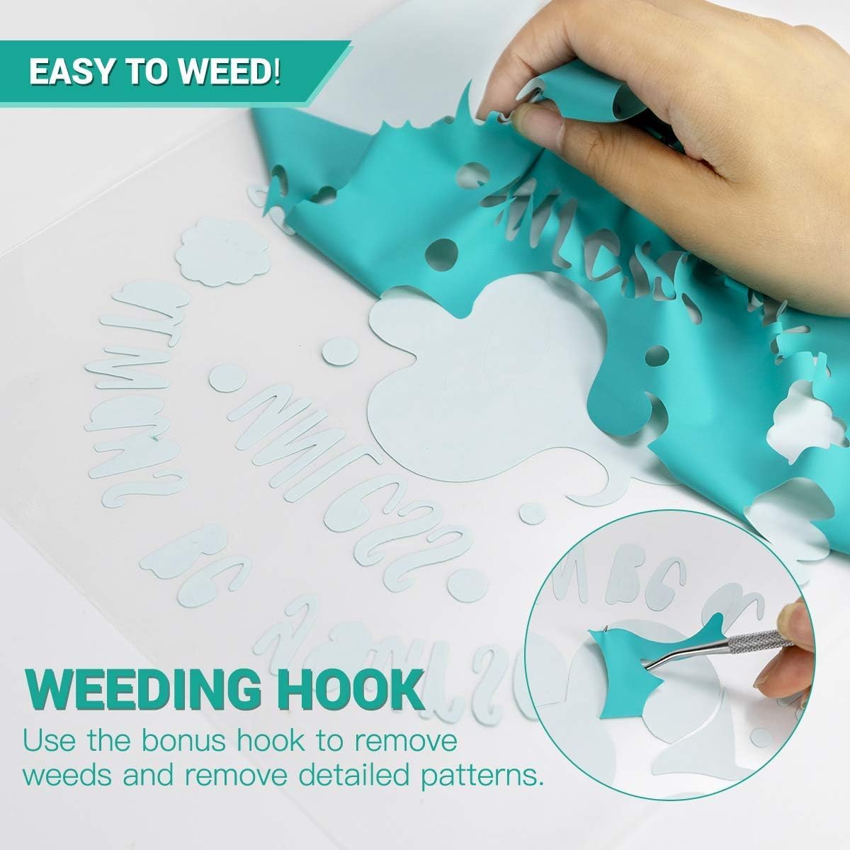 - 【GREAT VALUE MULTICOLORS HTV BUNDLE 】Each HTV Heat Transfer Vinyl Bundle includes 23 sheets of High Quality PU HTV vinyl in 21 vibrant, rich colors to meet all your project needs. As an added VALUE BONUS, we have included 1 TEFLON SHEET & WEED HOOK to complete your iron on/heat press project needs.