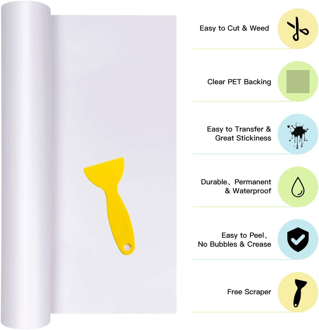 - CLEAR PET BACKING: Say goodbye to paper backing, which sticks to mat and ruin your design. Using our white permanent vinyl with PET backing, you will not need to clean your mat and worry about project damage. No more cheap paper backing ruining and separating from the white vinyl in the cutting process. Our PET backing is the ultimate answer to your woes