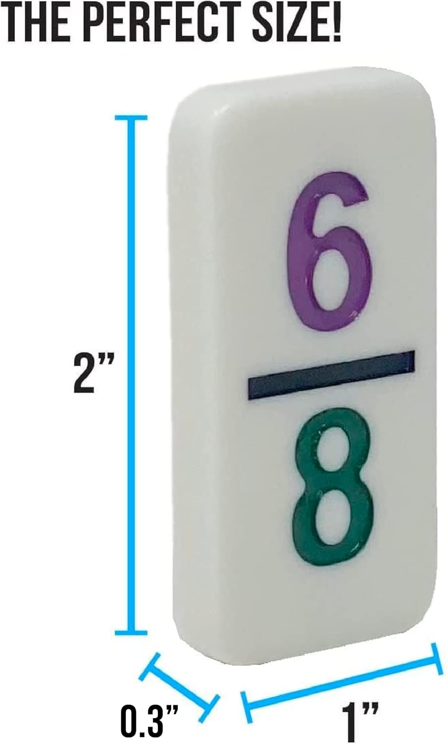 - Colorful Domino Set: This dominoes set, featuring vibrant colors, consists of 91 double-12 numbered domino tiles. Each die has bright colors that are easy for children to see. The size of each domino tile is 2"x1"x.3", making it easy for children to handle and play with.