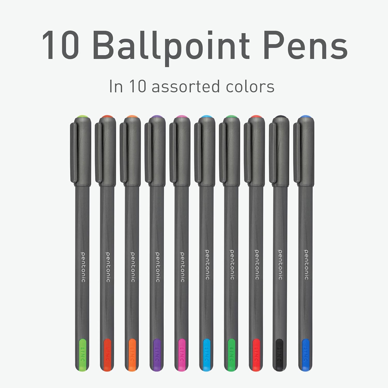 linc Pentonic Premium Ball Point Pen 1.0 mm Medium Point, 10-Count, Assorted Colors | Medium Point Featherlite Feel, Easy Flow Ink Technology, Sleek Matte Finish