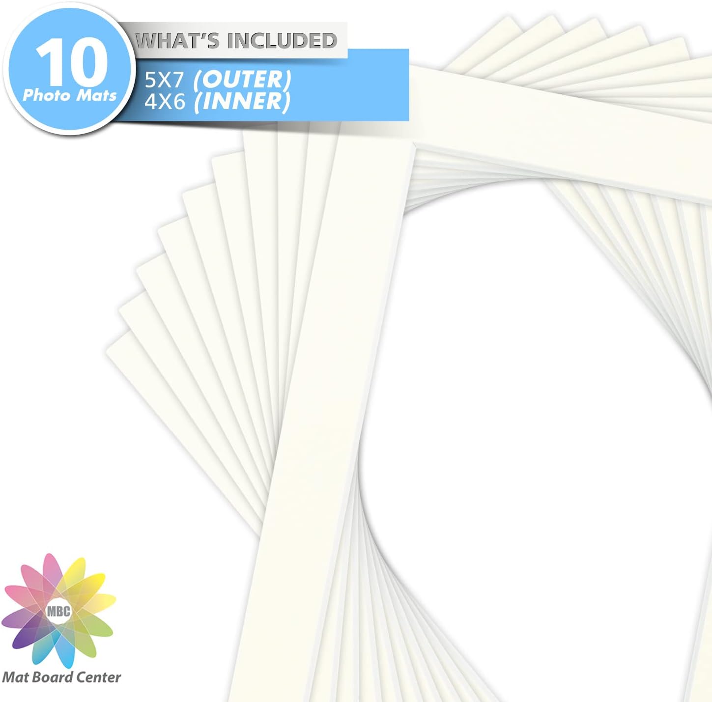Mat Board Center, Pack of 10, 5x7 for 4x6 Ivory Turret Color Mats - Bevel Cut, Acid Free, 4-ply Thickness, White Core - for Pictures, Photos, Framing