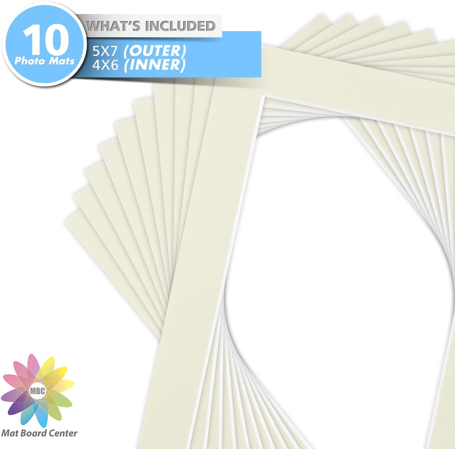 Mat Board Center, Pack of 10, 5x7 for 4x6 Light Gray Color Mats - Bevel Cut, Acid Free, 4-ply Thickness, White Core - for Pictures, Photos, Framing