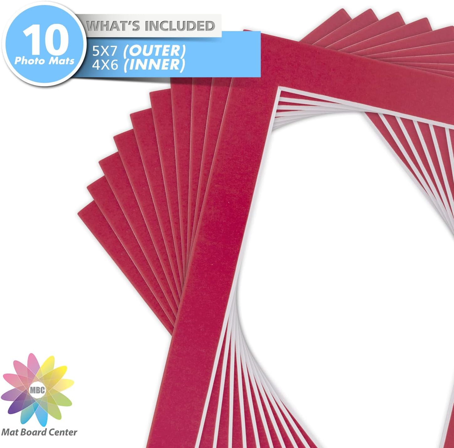 Mat Board Center, Pack of 10, 5x7 for 4x6 China Red Color Mats - Bevel Cut, Acid Free, 4-ply Thickness, White Core - for Pictures, Photos, Framing