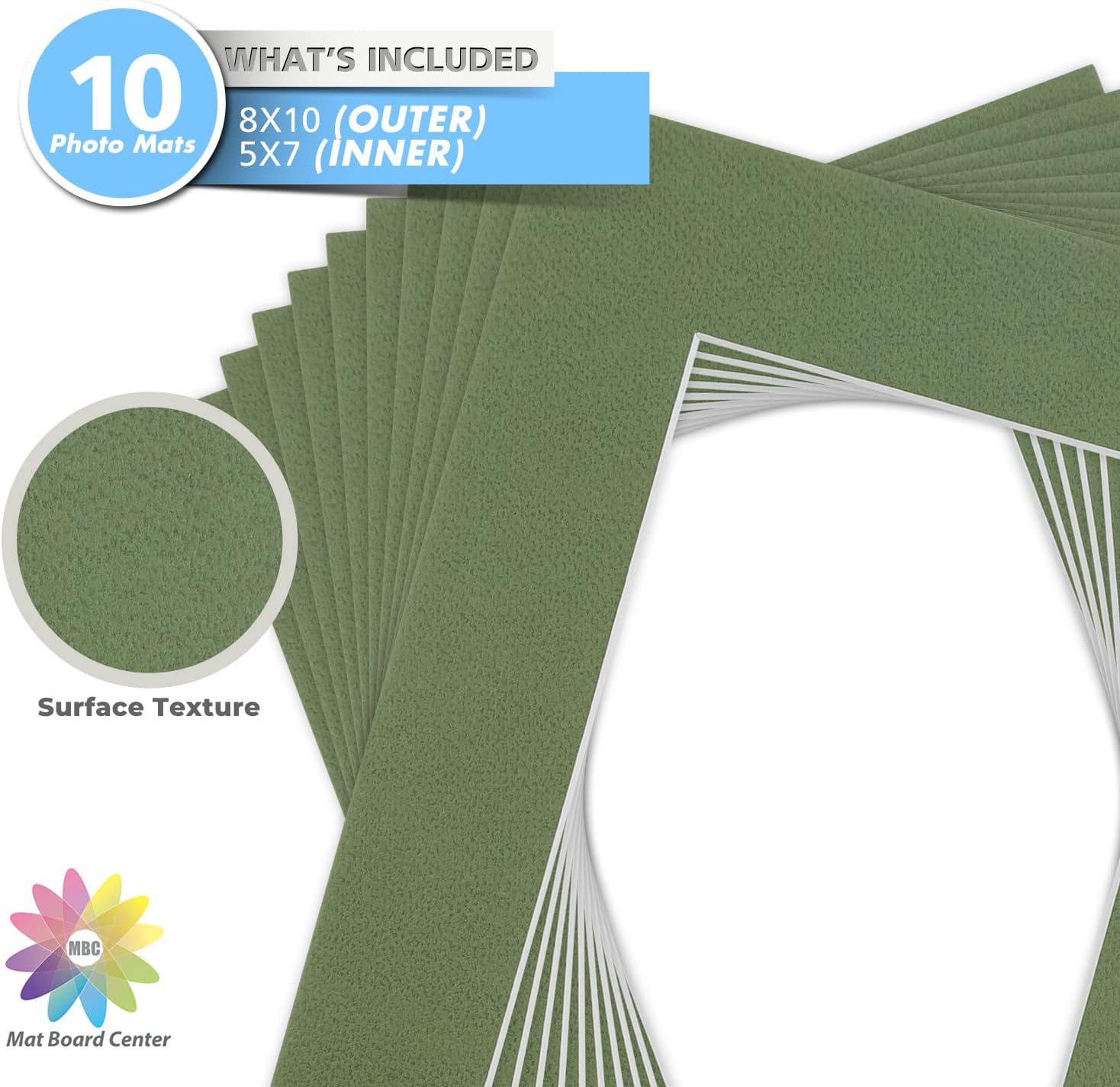 Mat Board Center, Pack of 10, 8x10 for 5x7 Rock Garden Color Mats - Bevel Cut, Acid Free, 4-ply Thickness, White Core - for Pictures, Photos, Framing