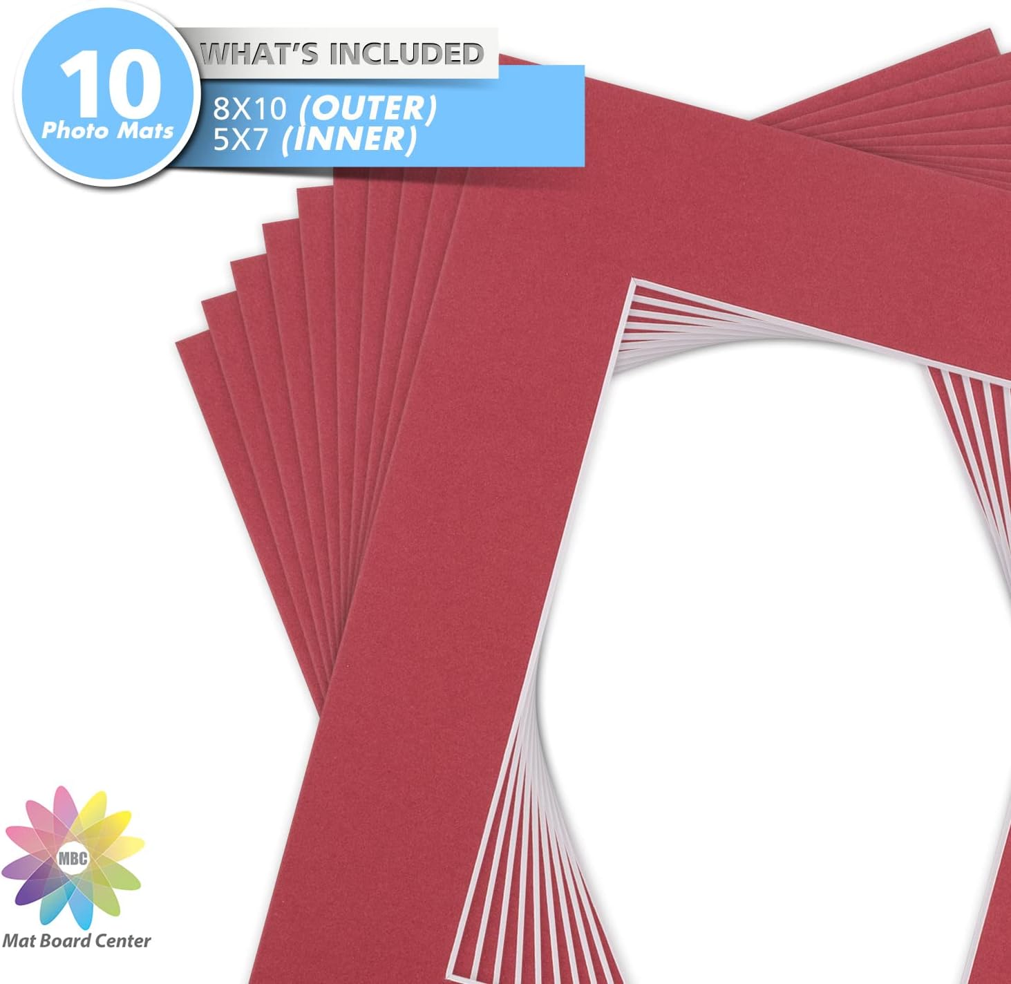 Mat Board Center, Pack of 10, 8x10 for 5x7 China Red Color Mats - Bevel Cut, Acid Free, 4-ply Thickness, White Core - for Pictures, Photos, Framing