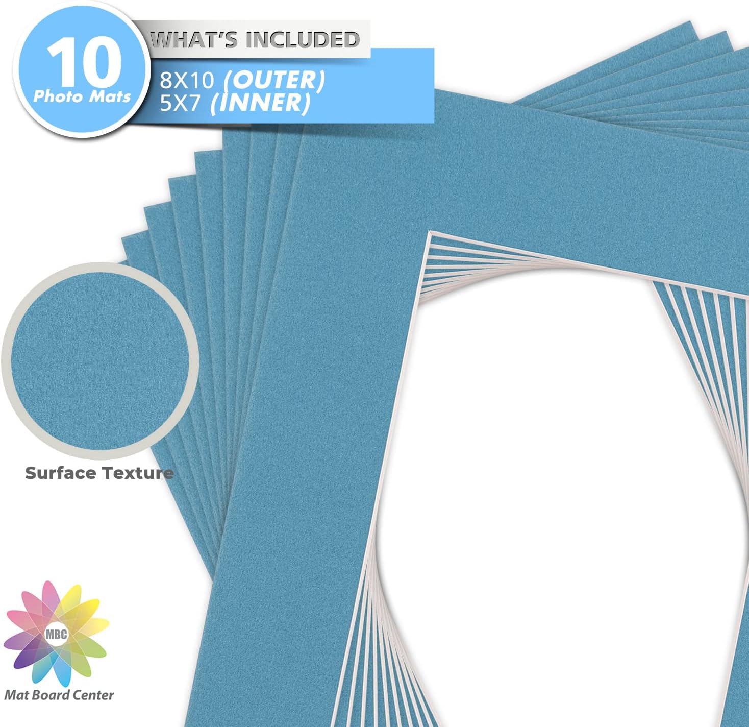 Mat Board Center, Pack of 10, 8x10 for 5x7 Dynamic Blue Color Mats - Bevel Cut, Acid Free, 4-ply Thickness, White Core - for Pictures, Photos, Framing
