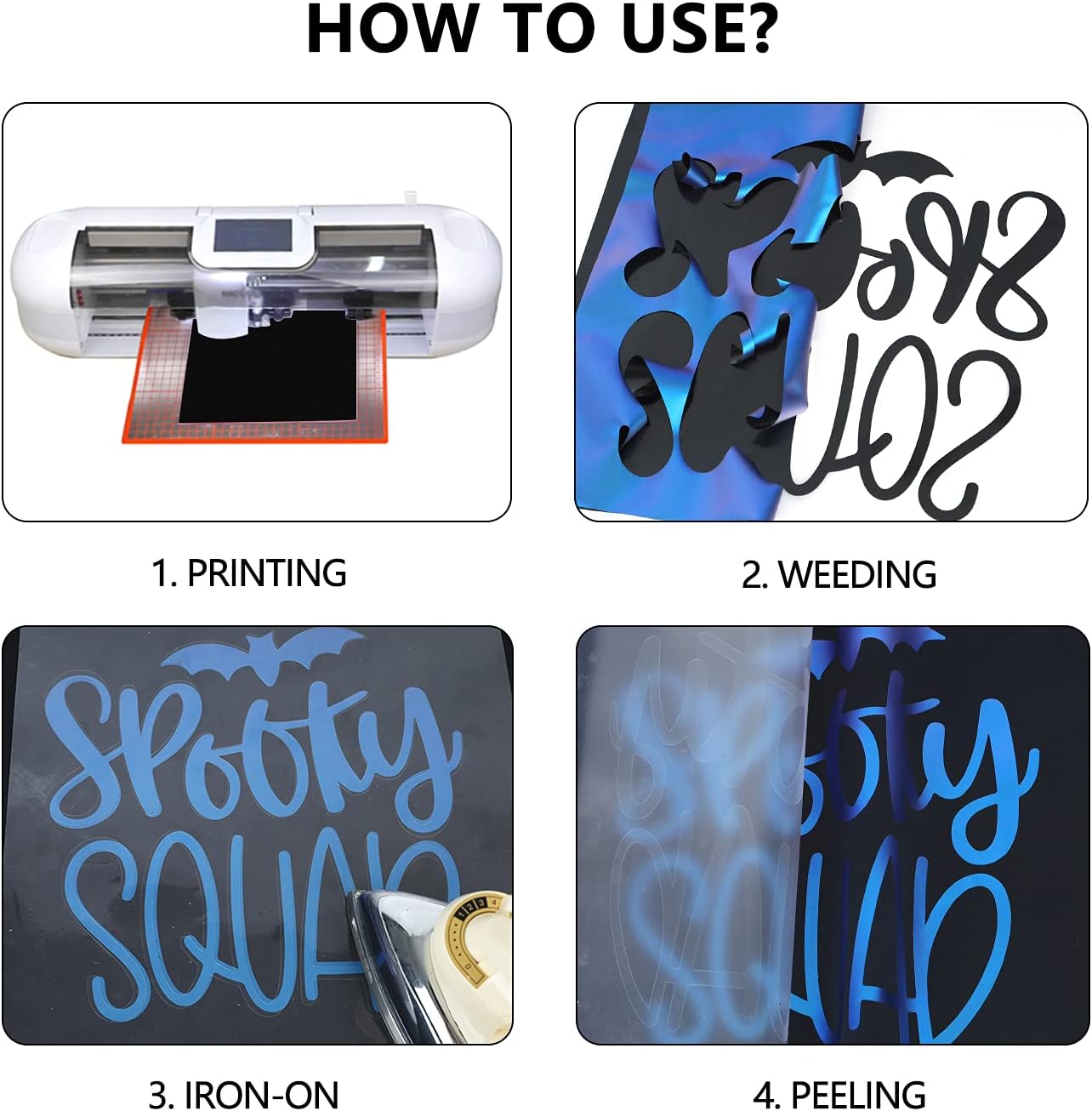 - ★EASY TO CUT & WEED: Chameleon heat transfer vinyl is suitable for different cut machines. Please remember to remove the “Blue Protective Film” before cutting, or it will influence the cutting, the color is similar with the back side of vinyl, so it is easy to be ignored. We advice to test a small piece before your project